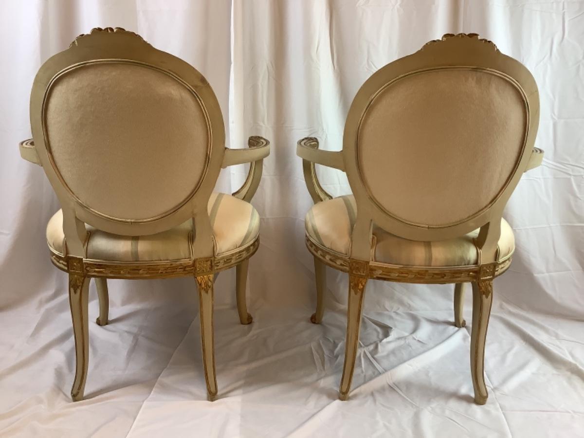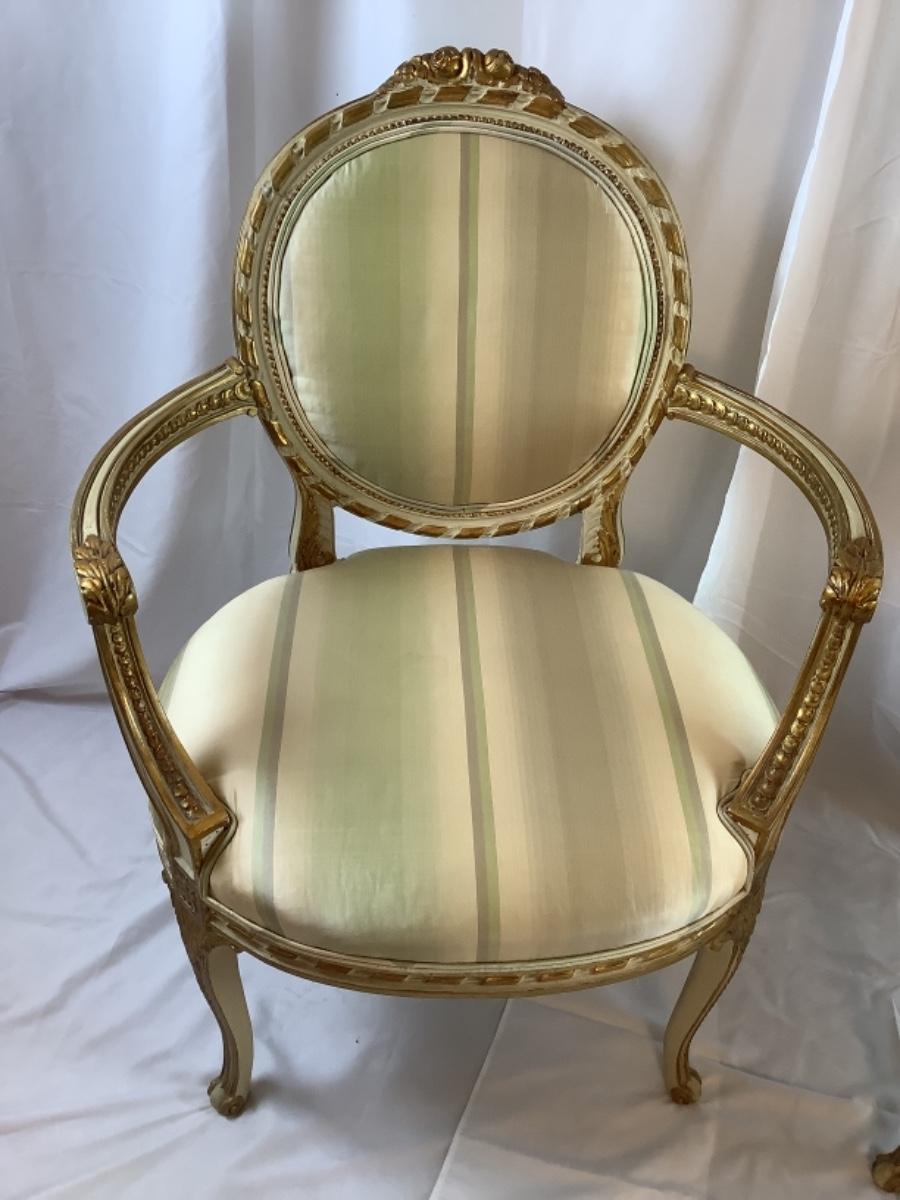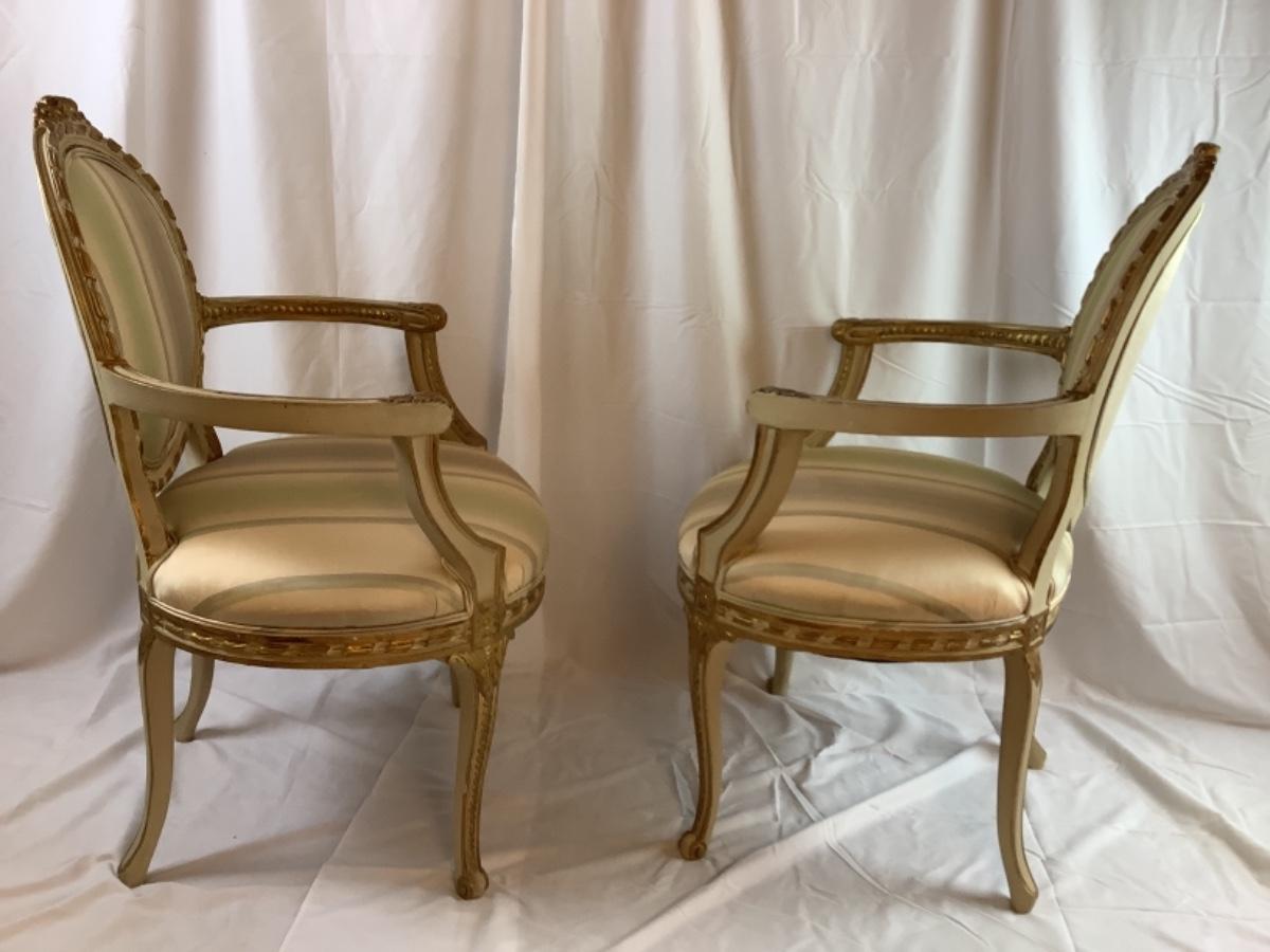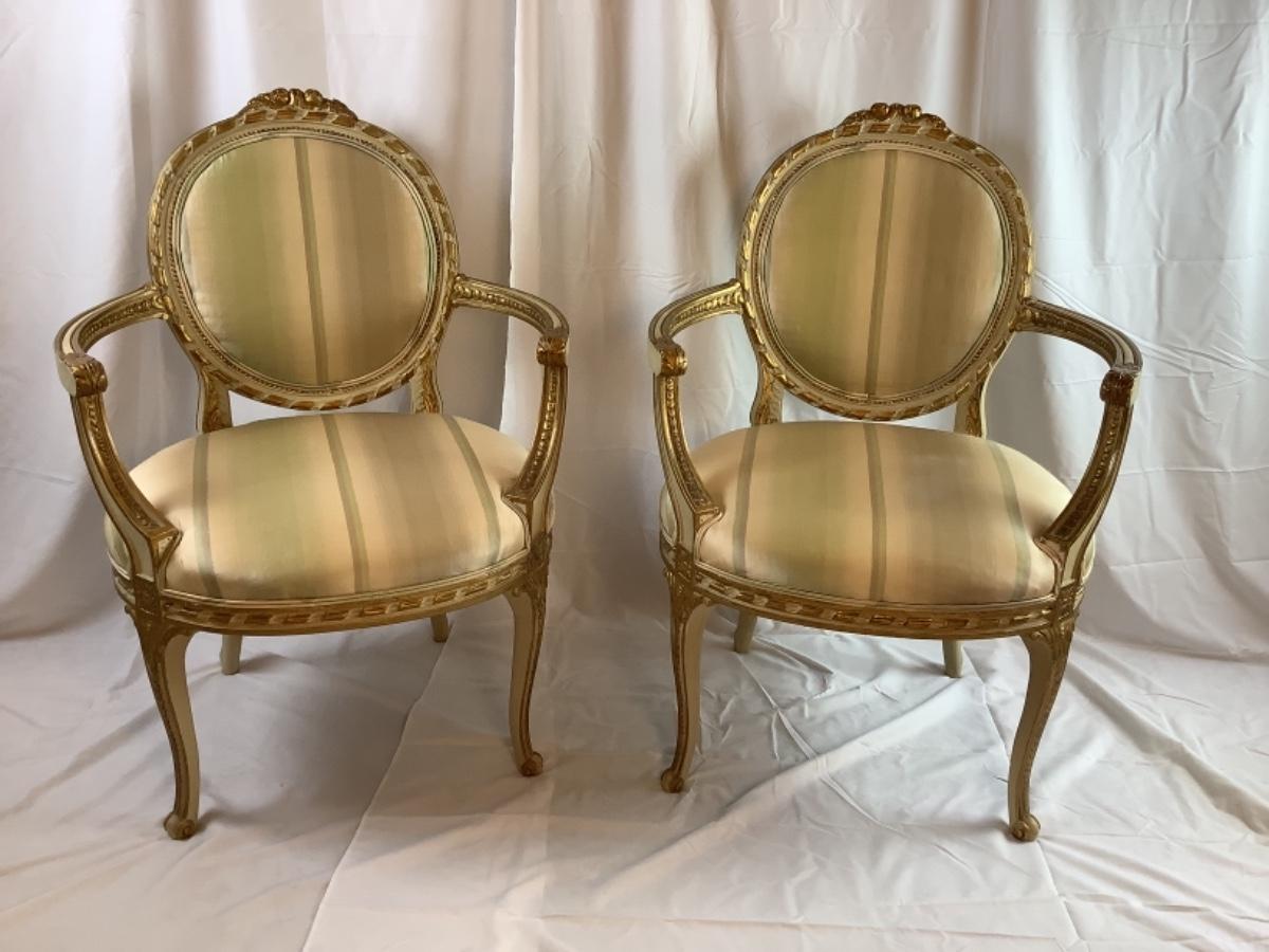 C. 1257. Pair of Antique Silk Upholstered French Armchairs