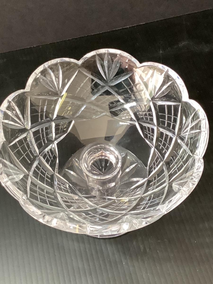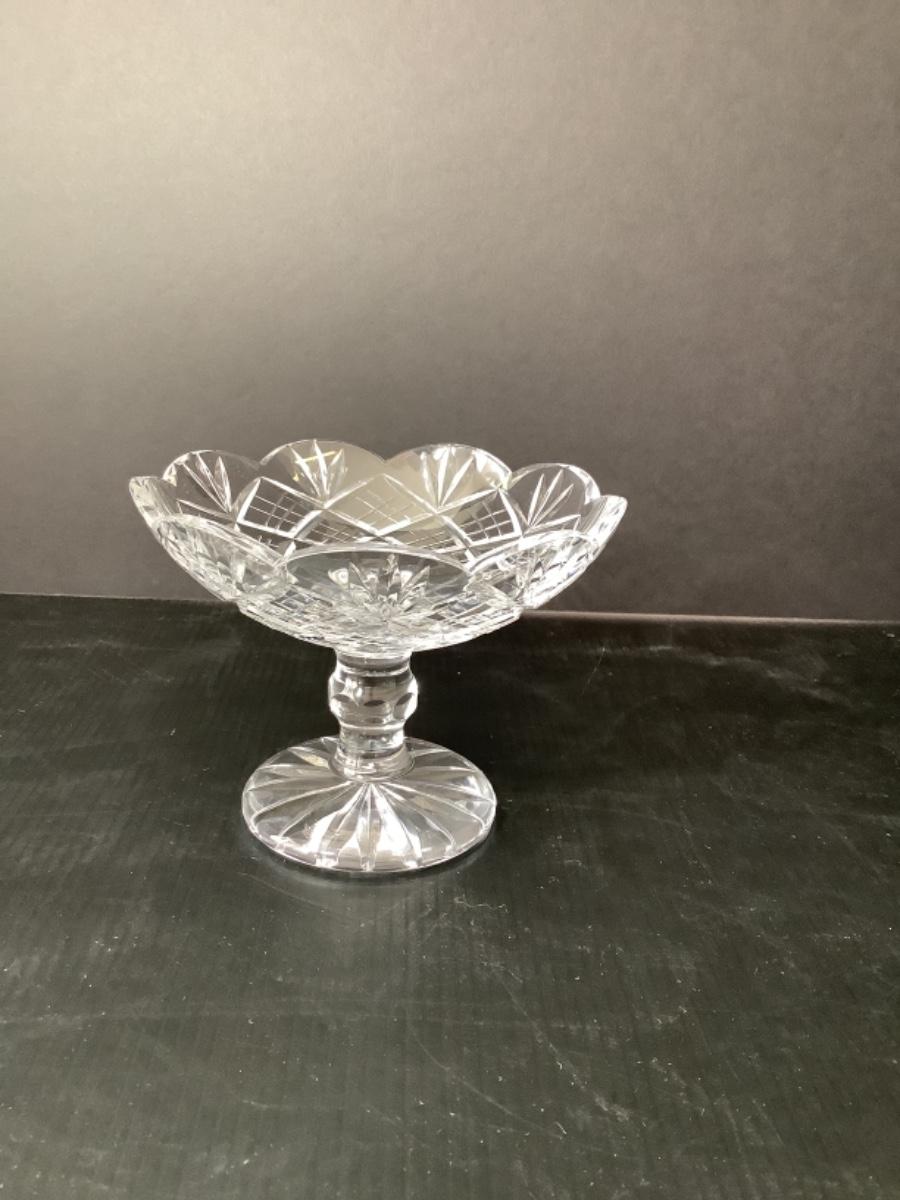Lead Crystal Pedestal Candy Dish, Signed Tipperary -