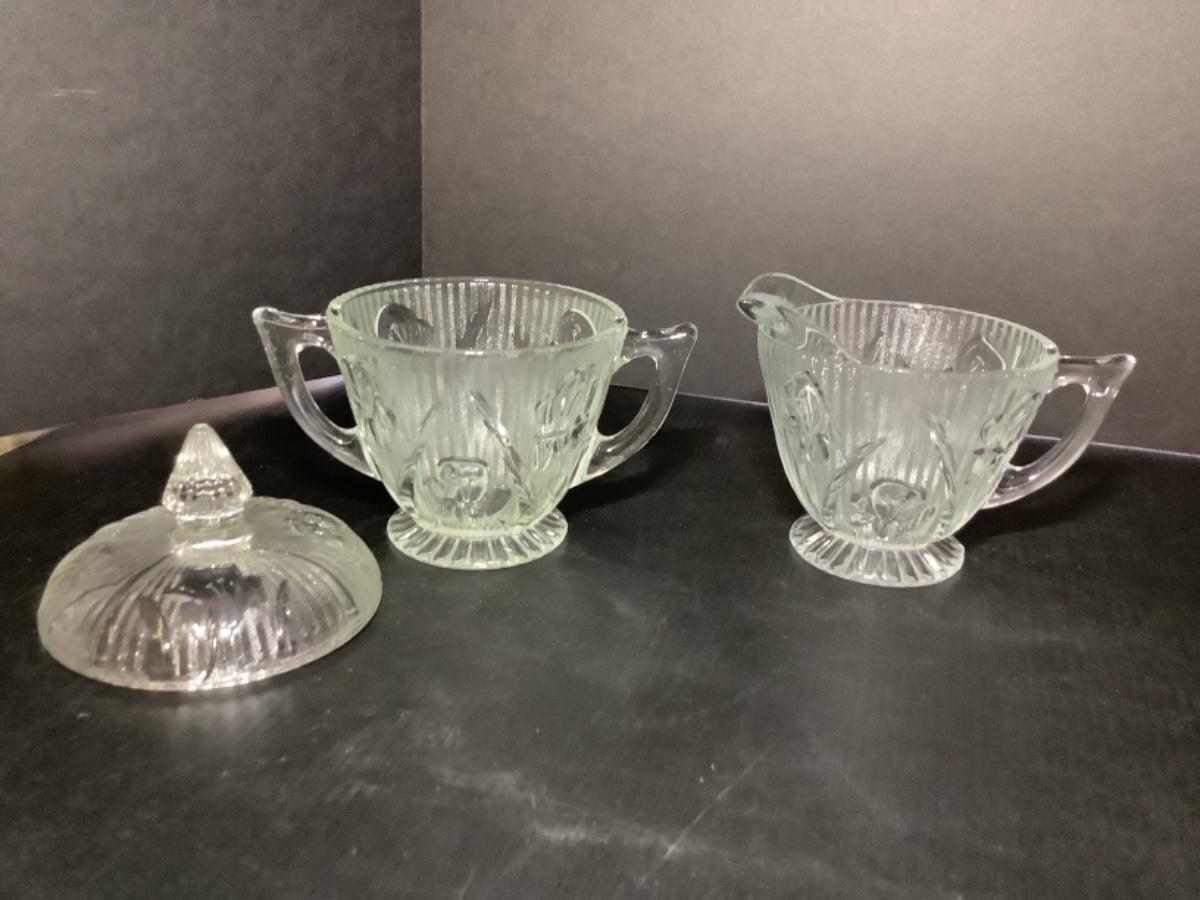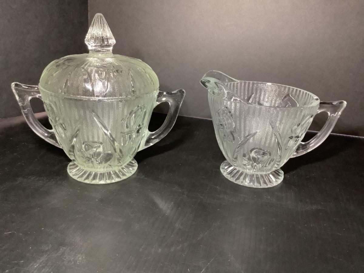 Vintage Jeanette Glass, Iris & Herringbone Cream / Sugar Set