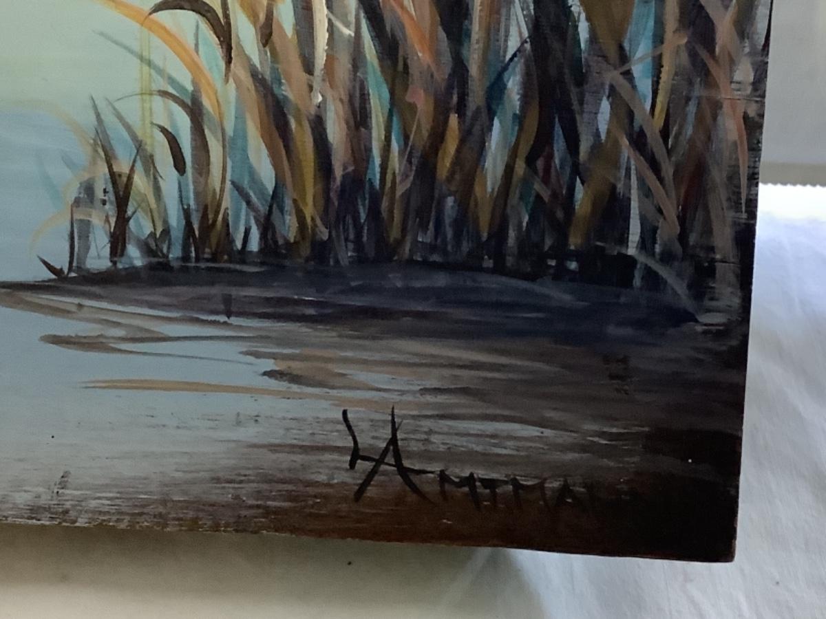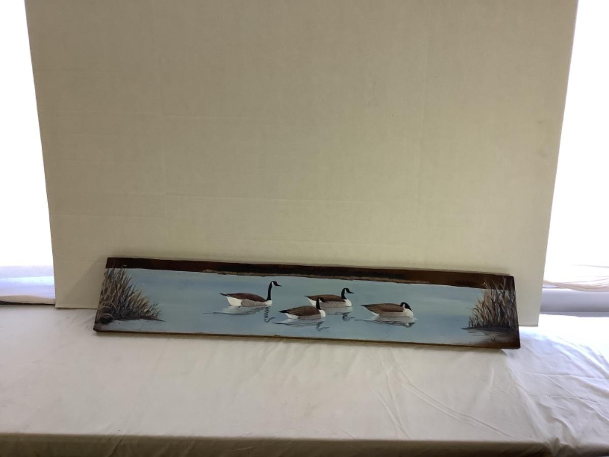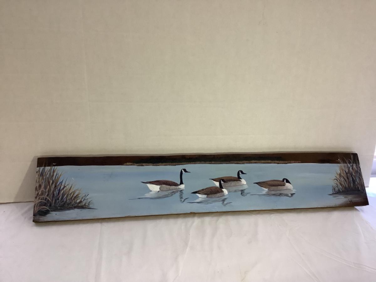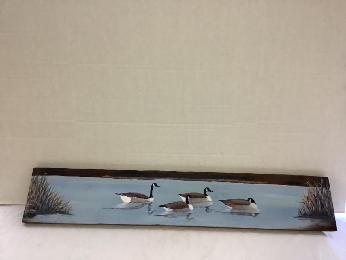 C - 178. Hand Painted Waterfowl Scene on Wooden Board by Linda Amtmann