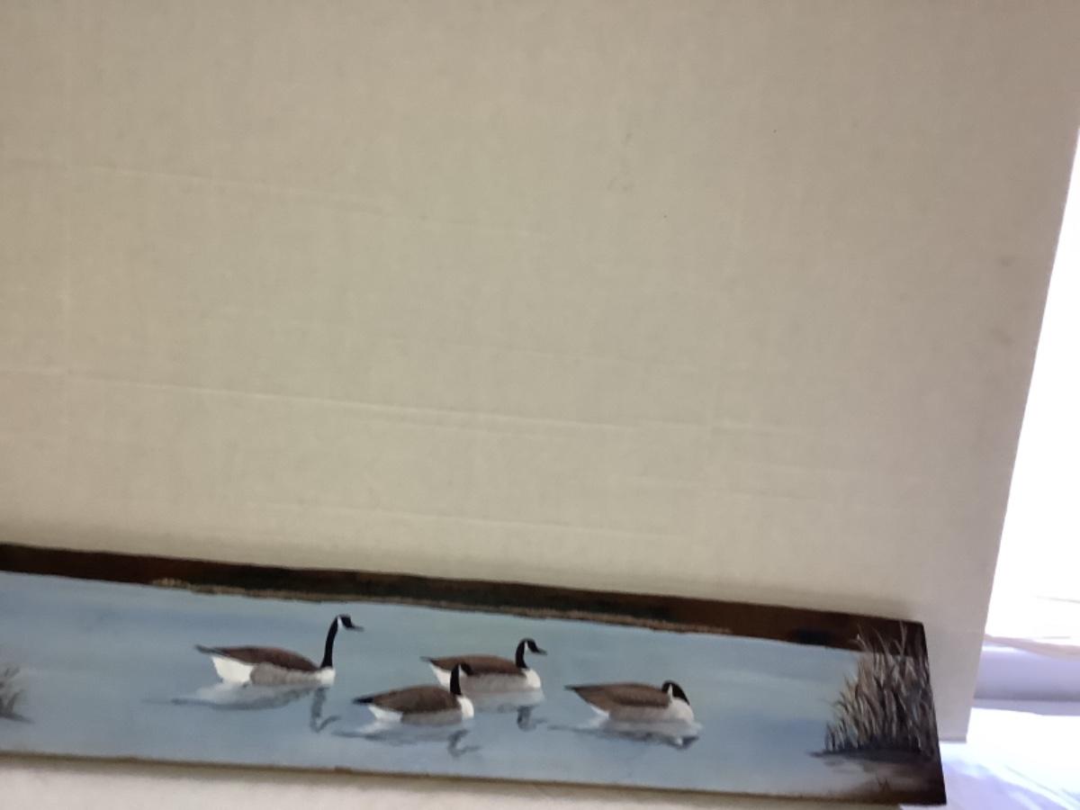 Hand Painted Waterfowl Scene on Wooden Board , by Linda Amtmann