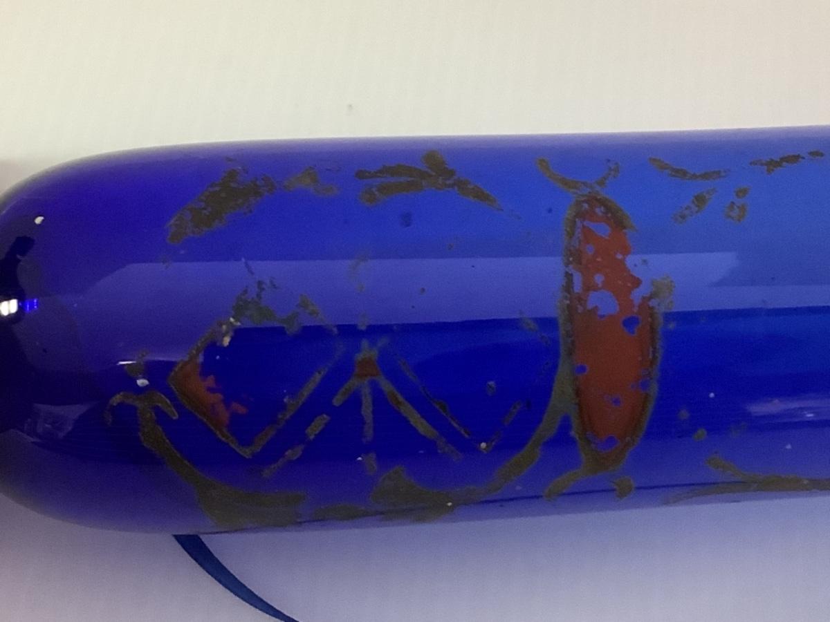 C - 184. Antique Victorian Cobalt Blue Nailsea Glass Rolling Pin. 1860