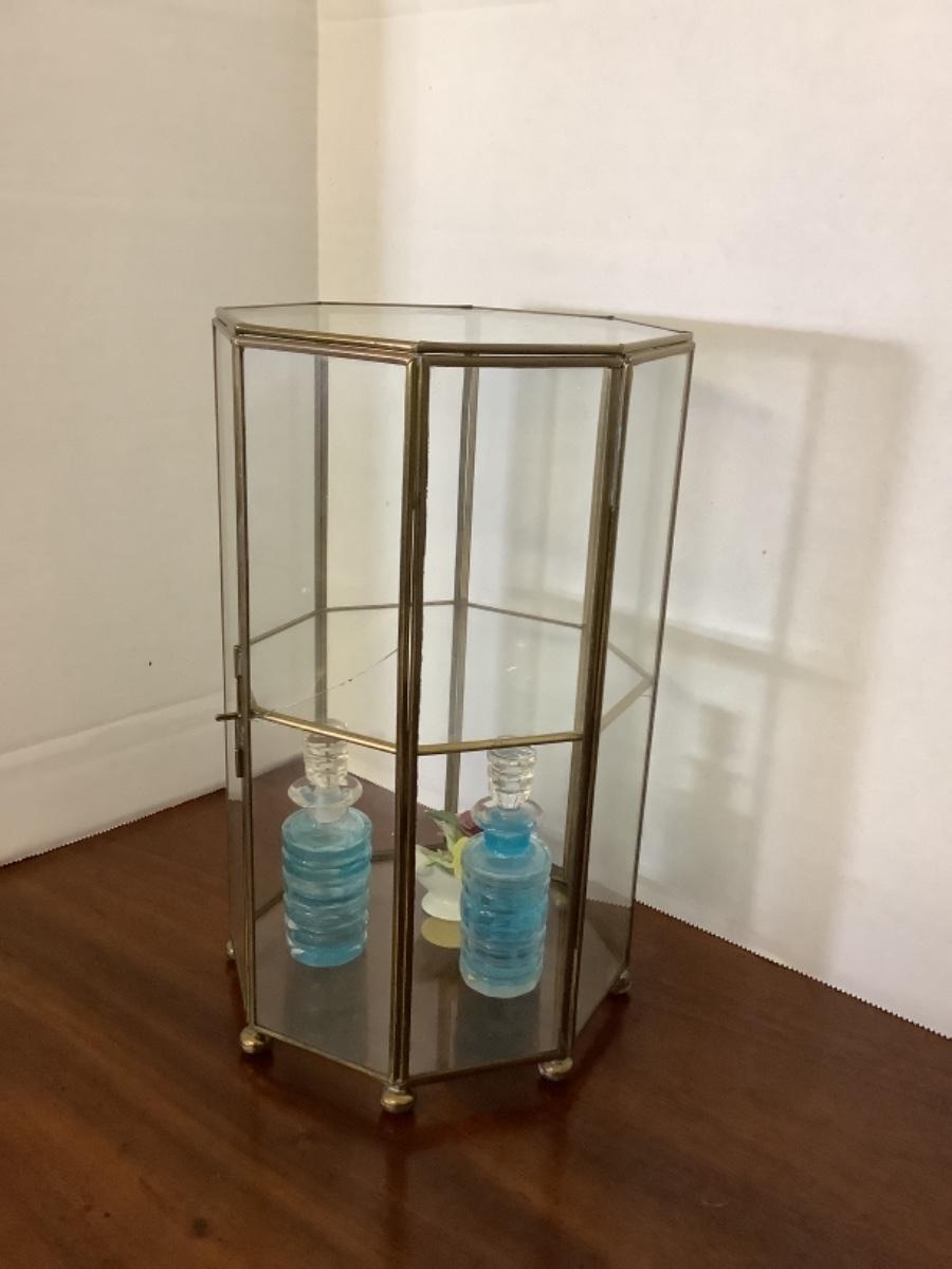 Octagon Glass Display Case with Antique Perfume Perfume Bottles