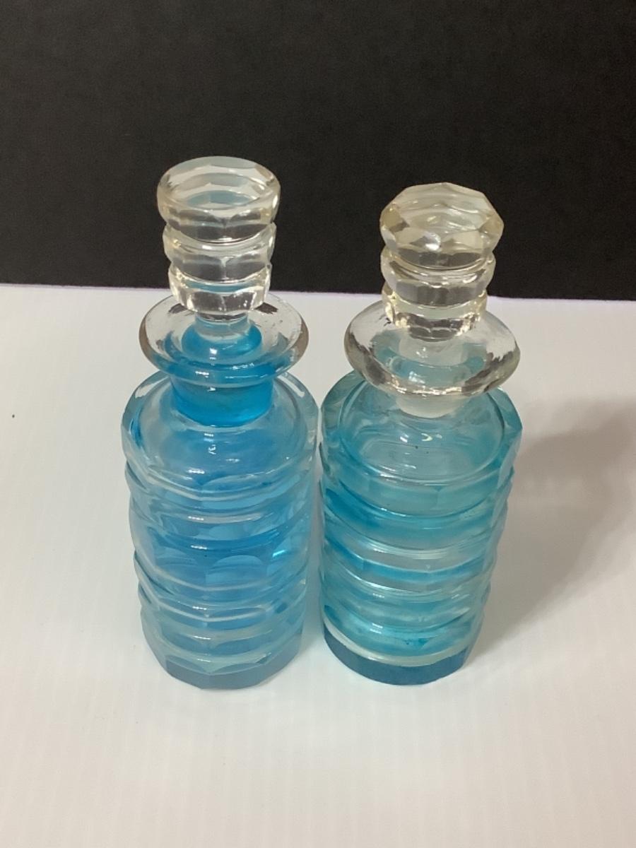 C - 187 Octagon Glass Display Case with Antique Perfume Perfume Bottles
