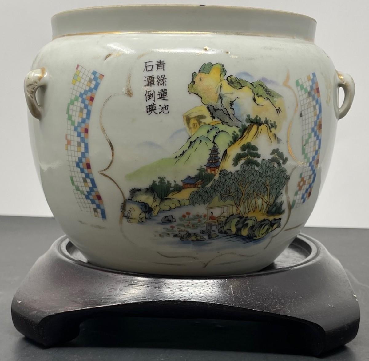 Description: C. 1880s Antique Chinese Famille rose porcelain pot Measurement approximate: 6"w x 5"h; Material: Porcelain