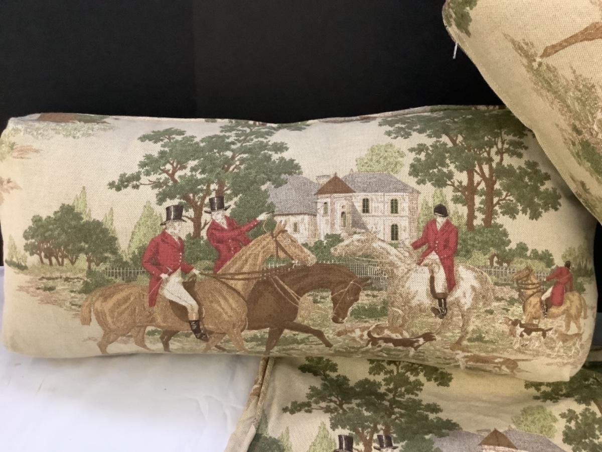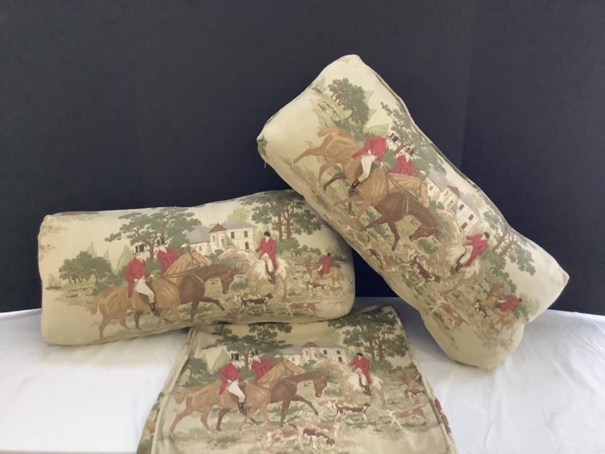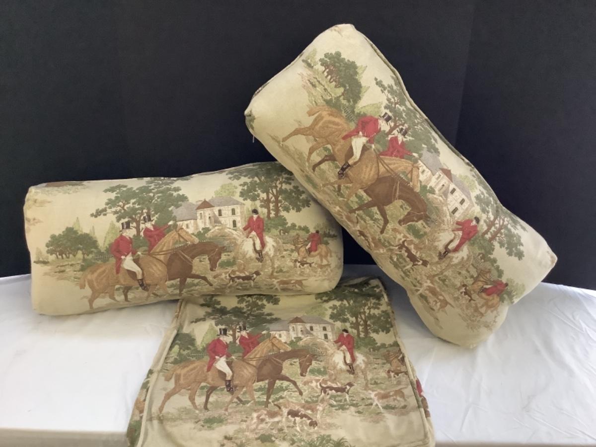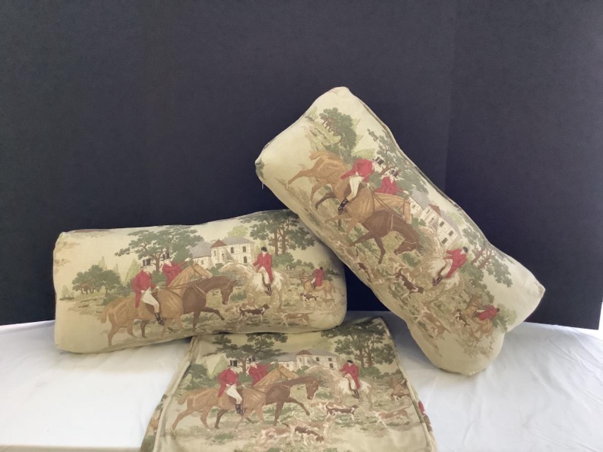 C - 189. Pair of Equestrian Decorative Pillows & One Seat Cushion Cover