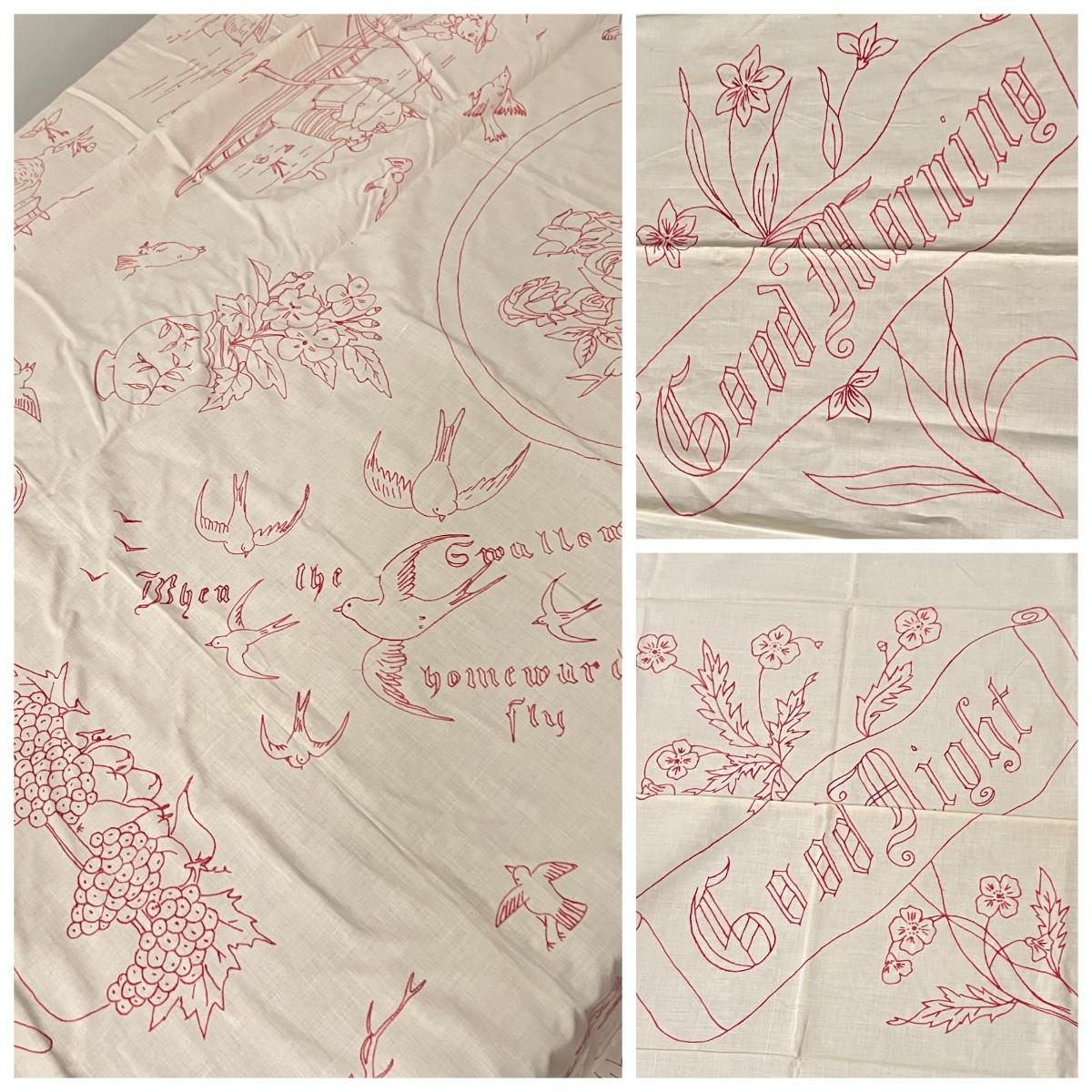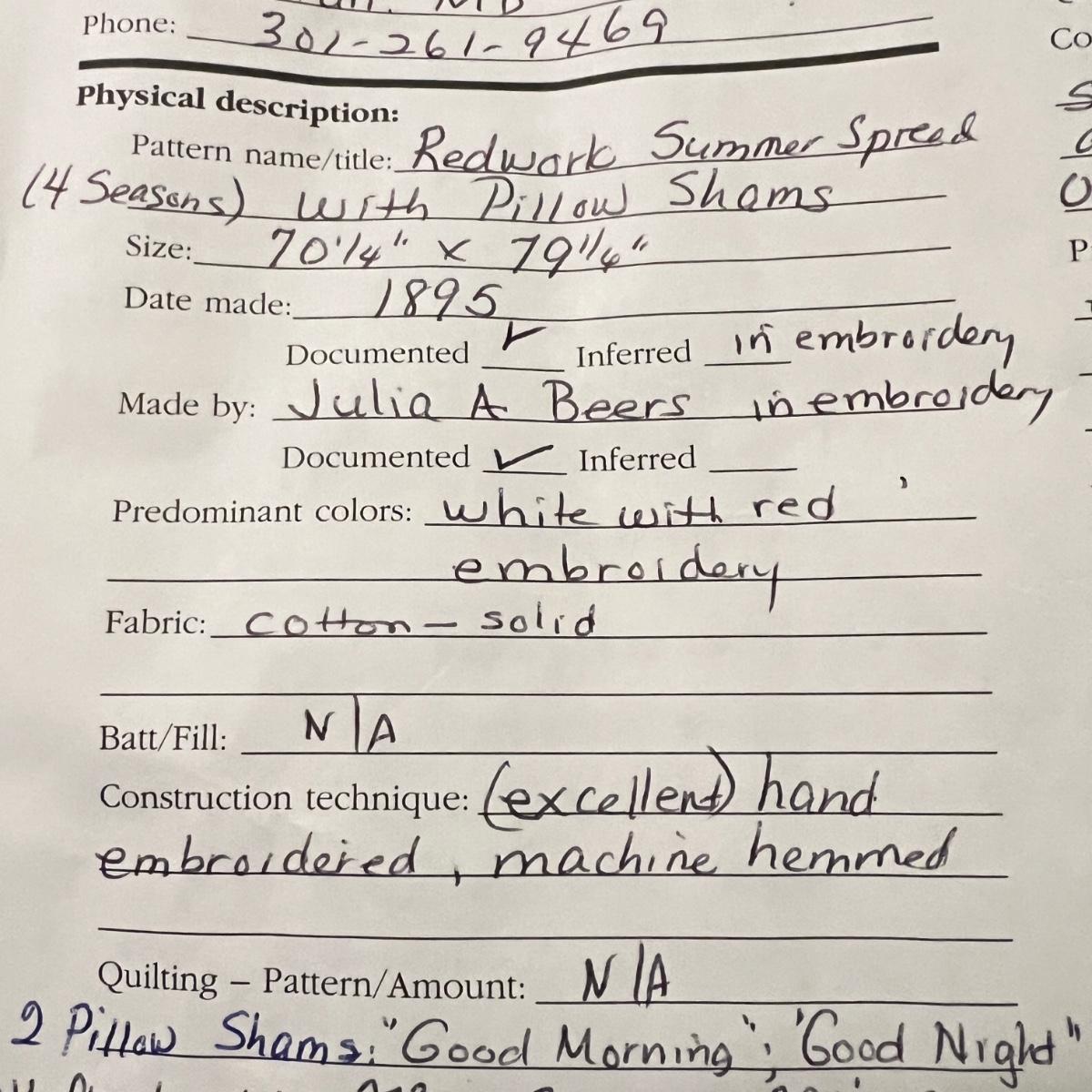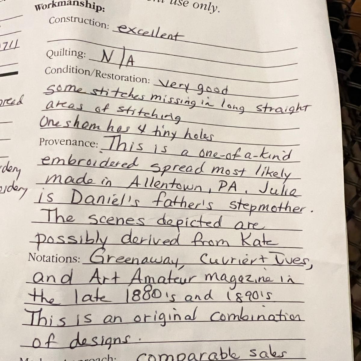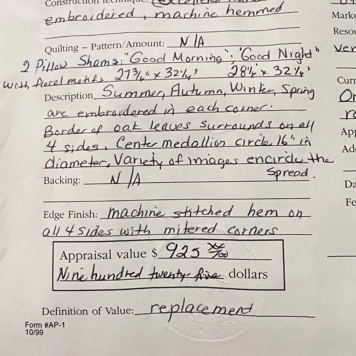 c. 1895 Antique Embroidered Coverlet “4 Seasons” w Shams & Appraisal