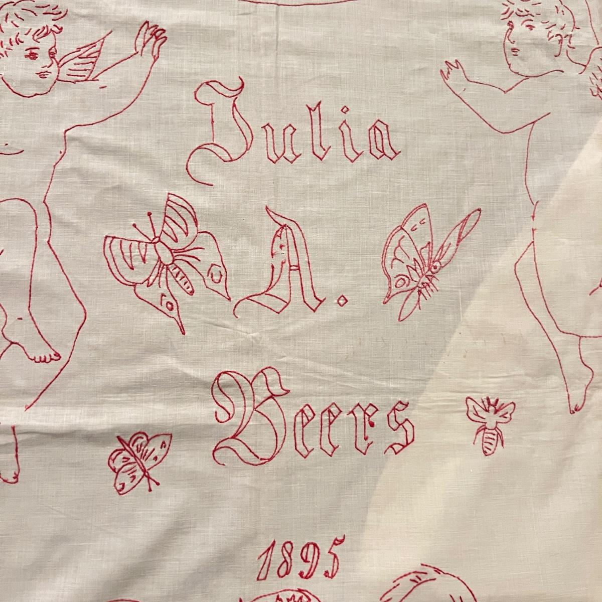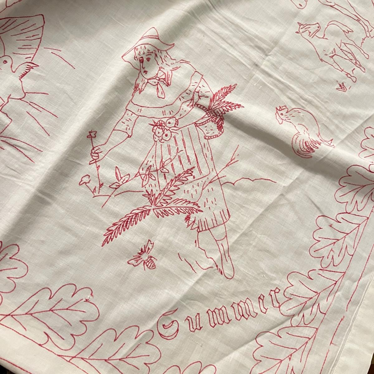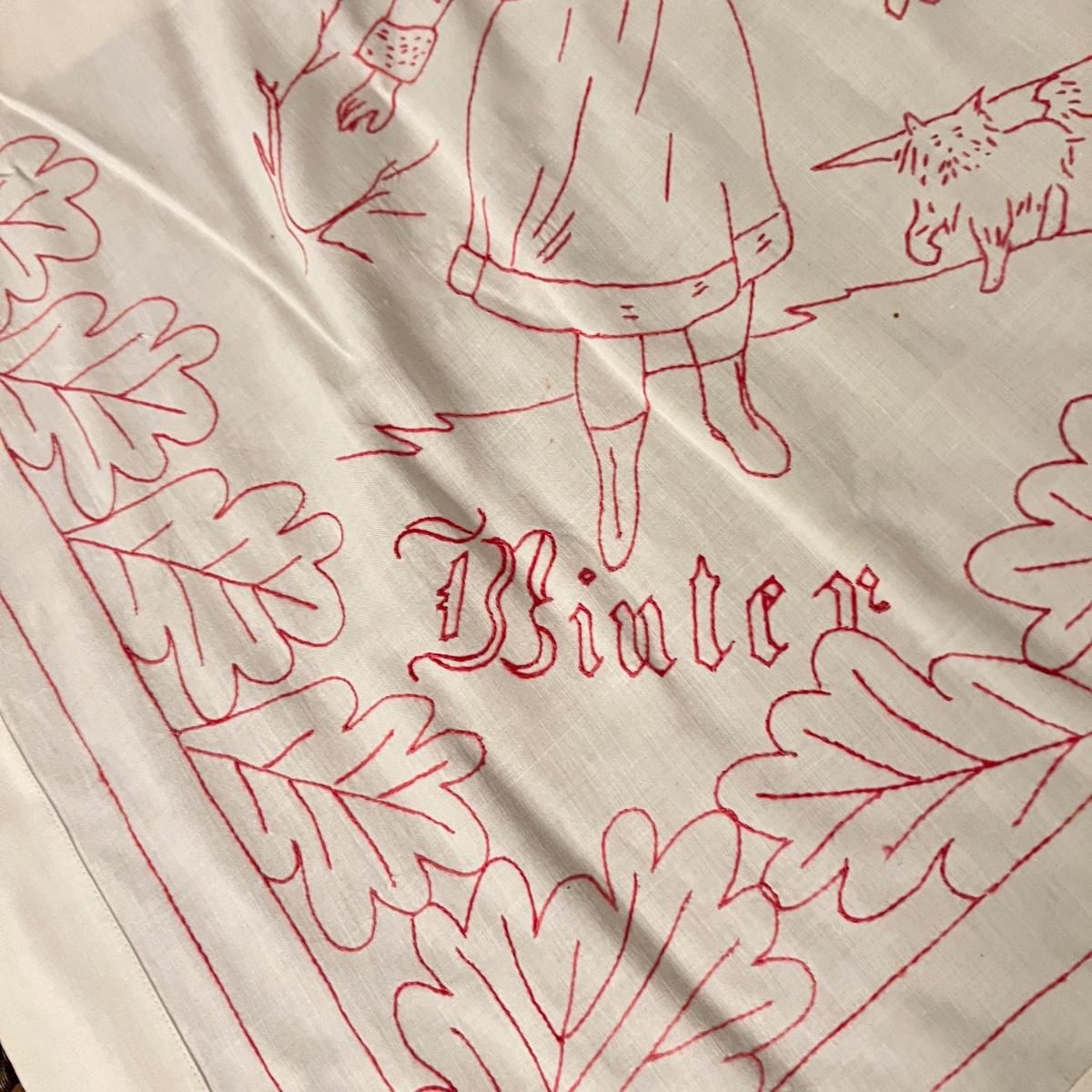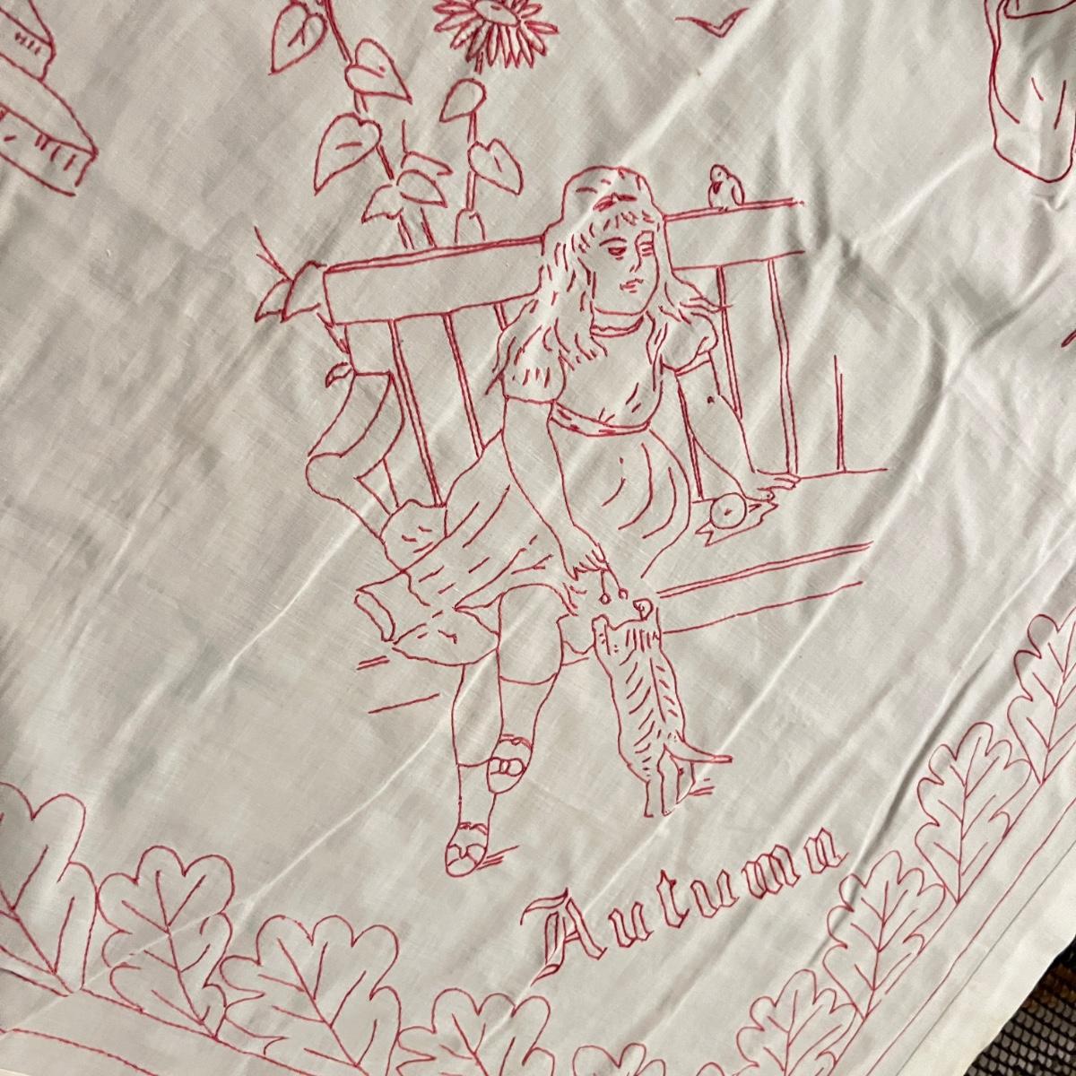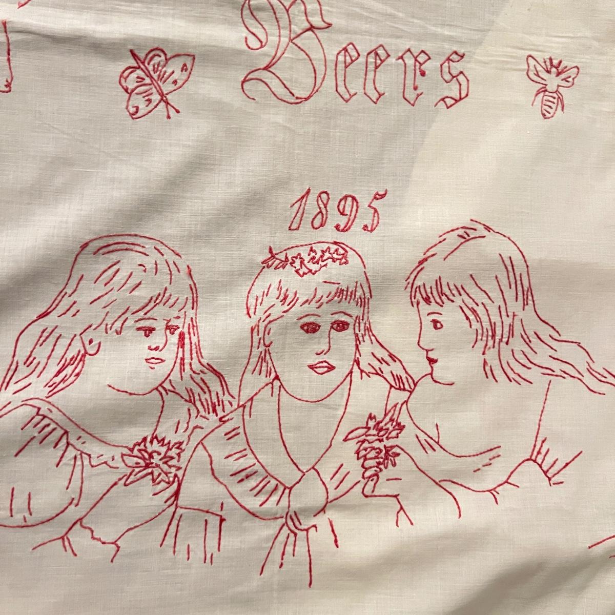 c. 1895 Antique Embroidered Coverlet “4 Seasons” w Shams & Appraisal