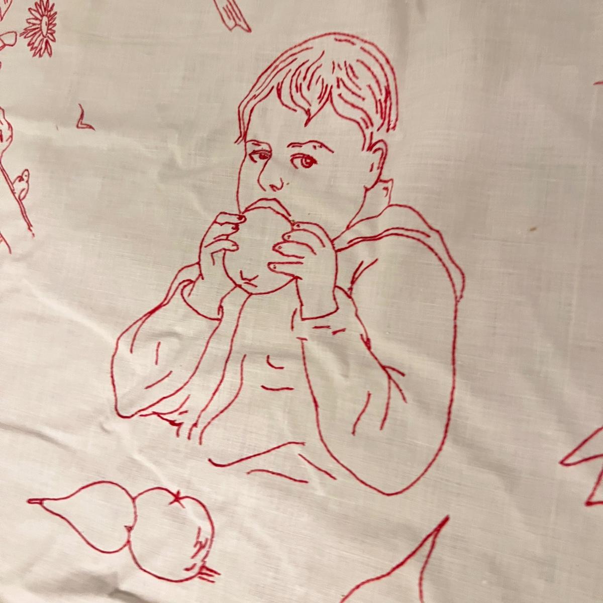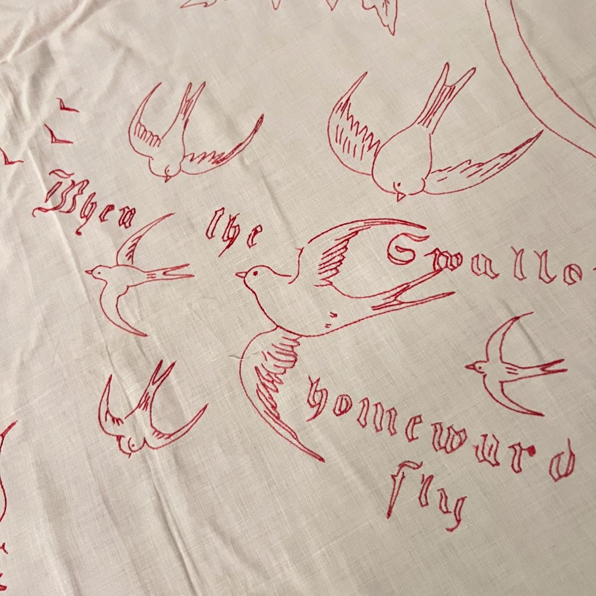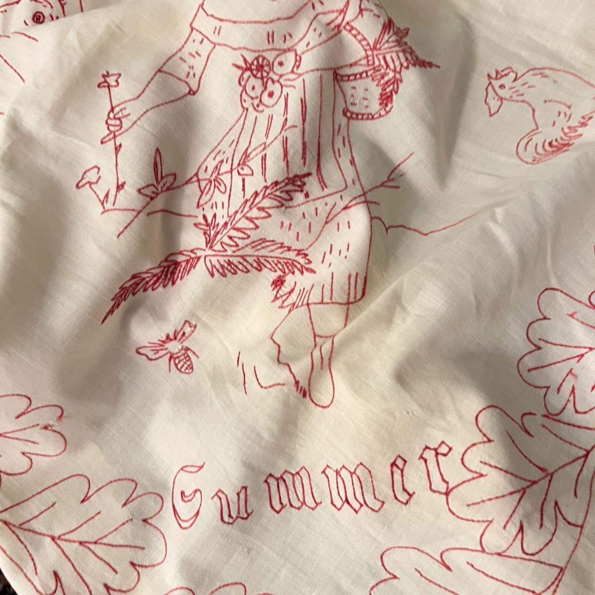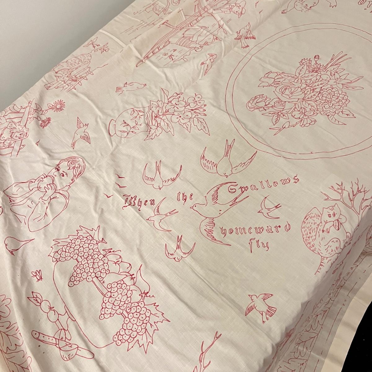 c. 1895 Antique Embroidered Coverlet “4 Seasons” w Shams & Appraisal