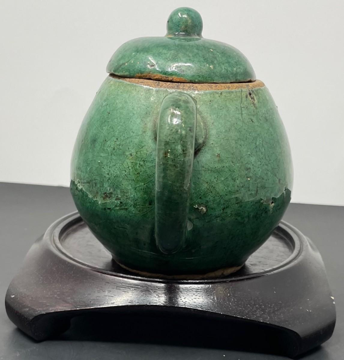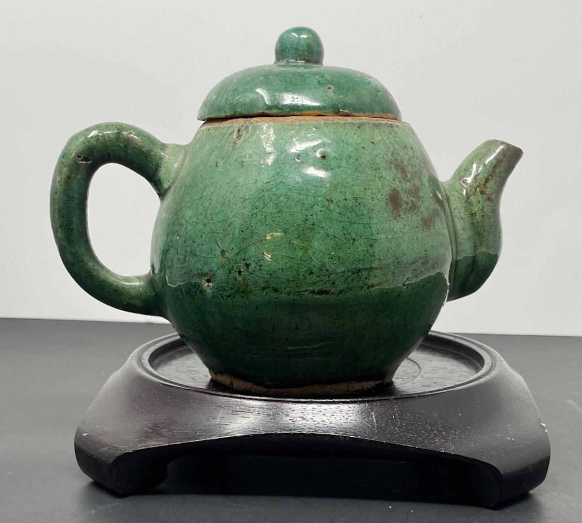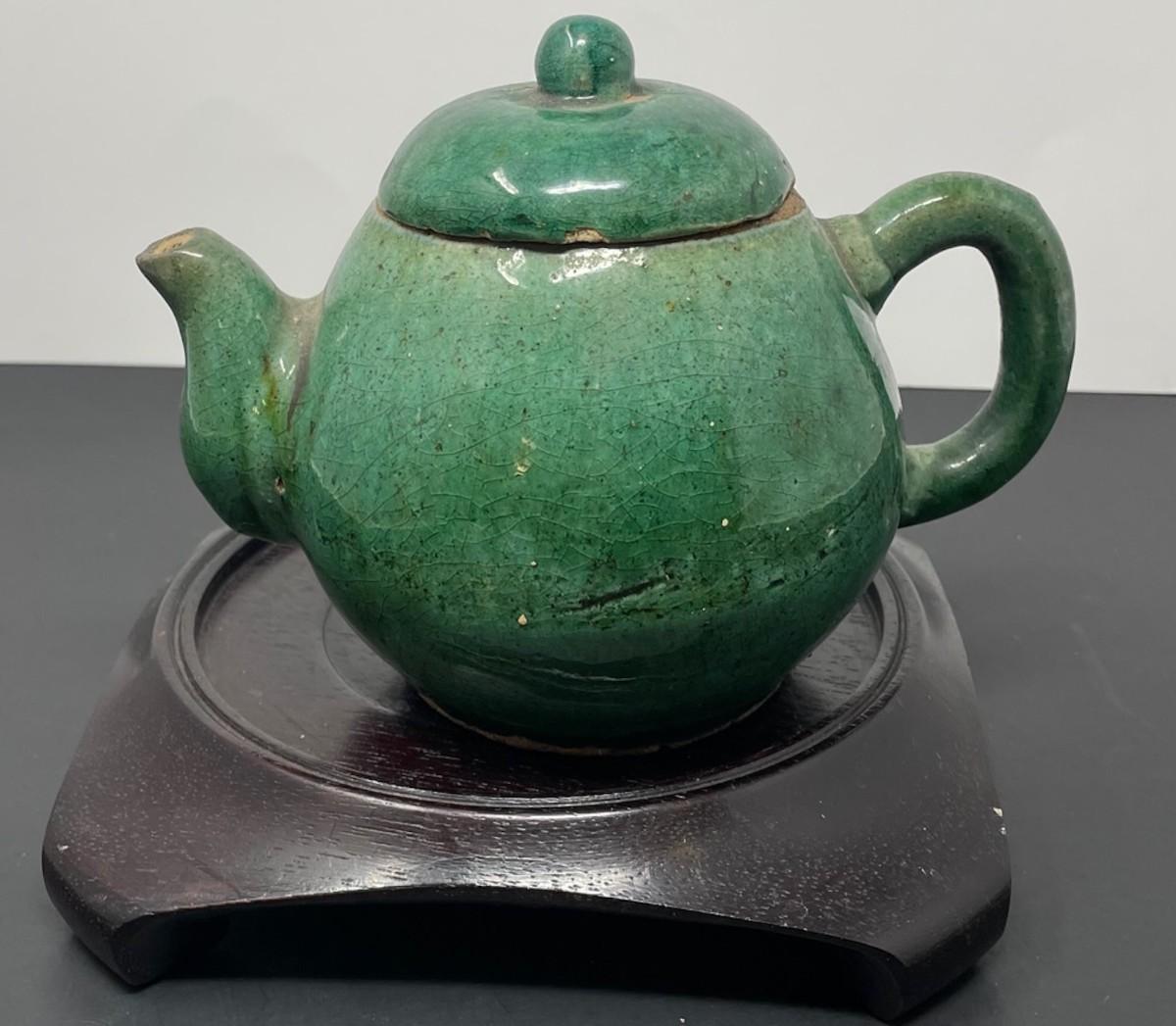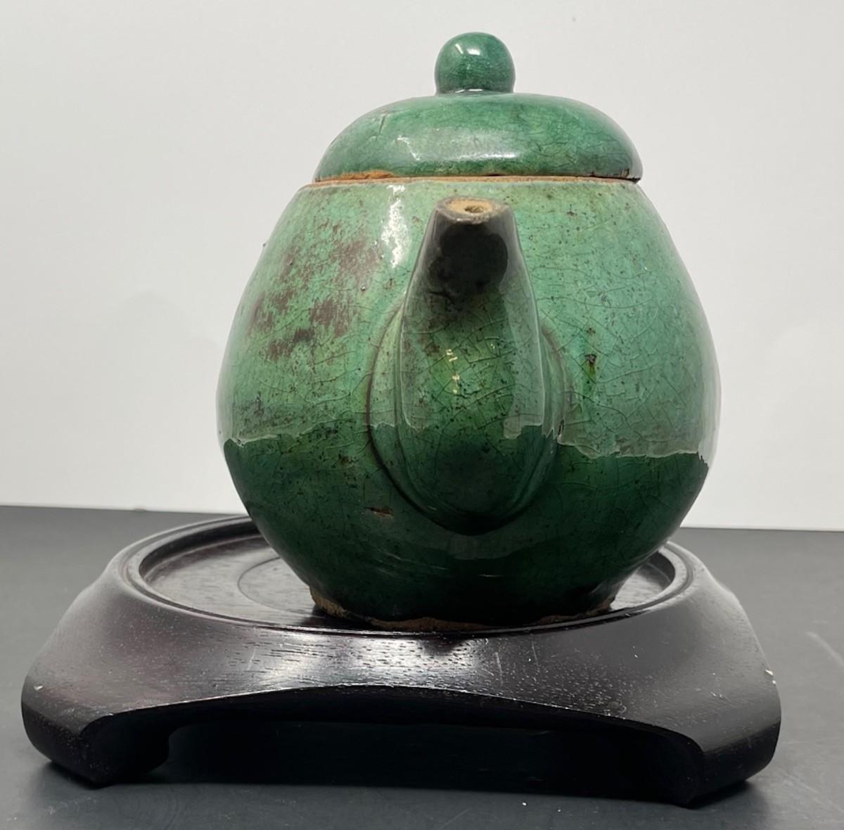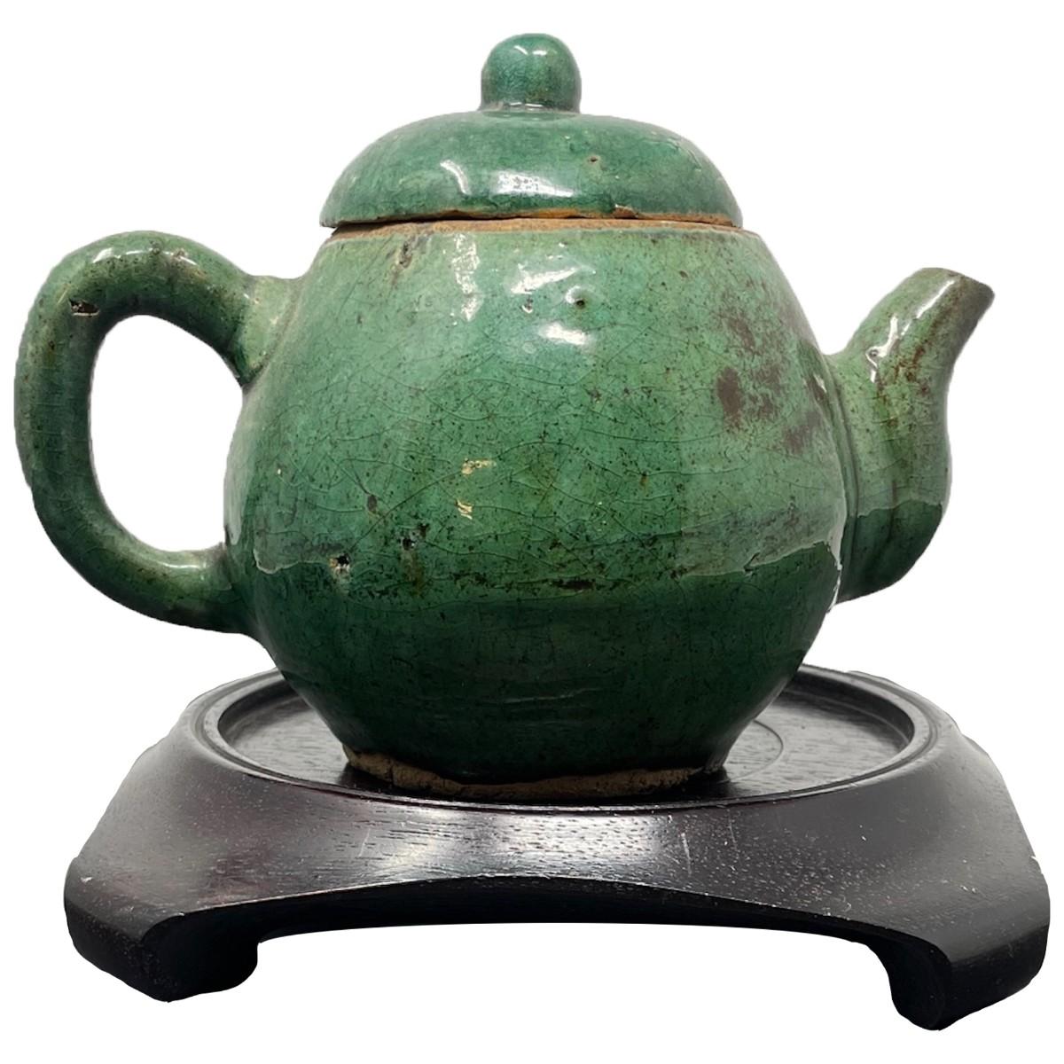 C. 1900 Antique Chinese Green tea pot W/ Lid 6 x 4