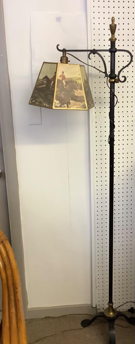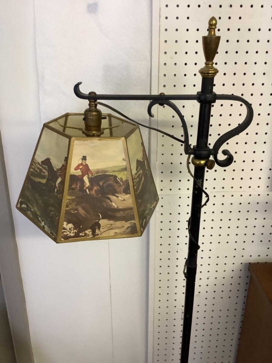 C - 191. Black Wrought Iron Floor Lamp with Equestrian Shade