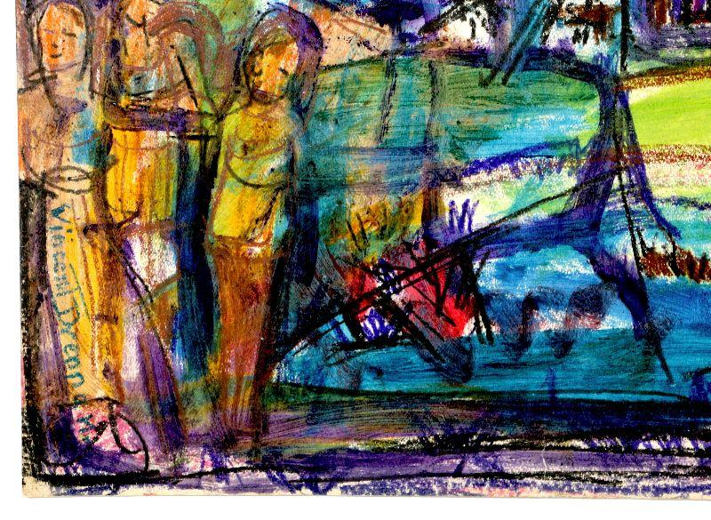 Original painting signed by artist Vincent Drennan. Medium: Pastel/Watercolor, Support: Paper, Artist: Vincent Drennan, Signature: Yes, lower right and also on the back of the painting, Approximate Work size: 24" x 18", Date of creation: 1942, Country of Origin: American, Condition: good/very good - as seen on pictures.