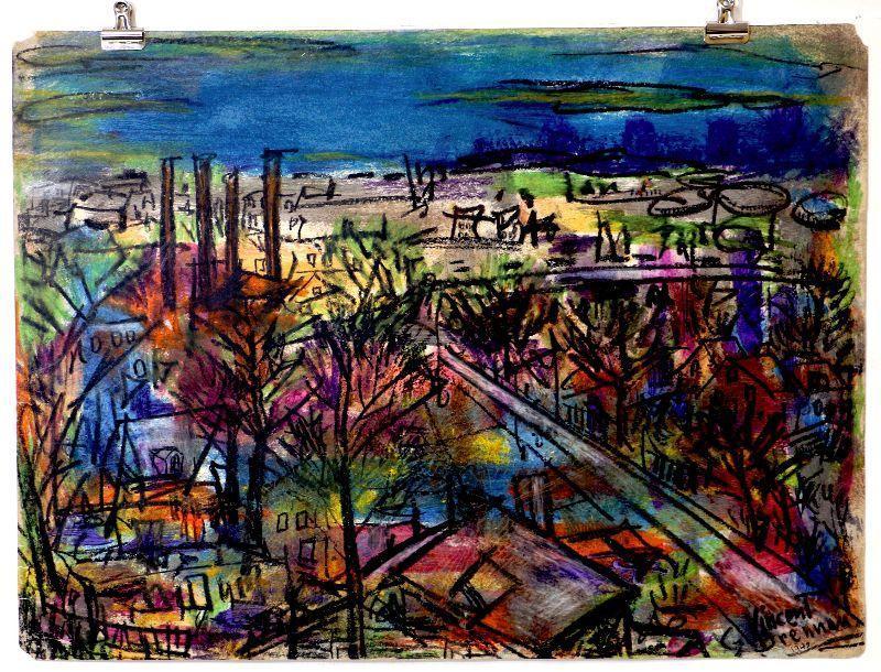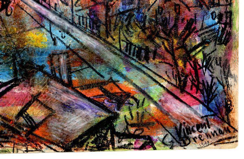 c. 1942 Pastel/Watercolor Painting Signed Vincent Drennan 24" x 18" #108
