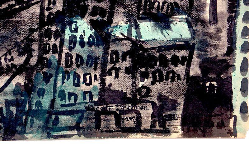 c. 1949 Watercolor Painting Signed Vincent Drennan 24" x 17.5" #105