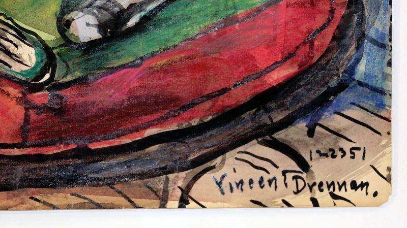 c. 1951 Watercolor Painting Signed Vincent Drennan 24" x 18" #102