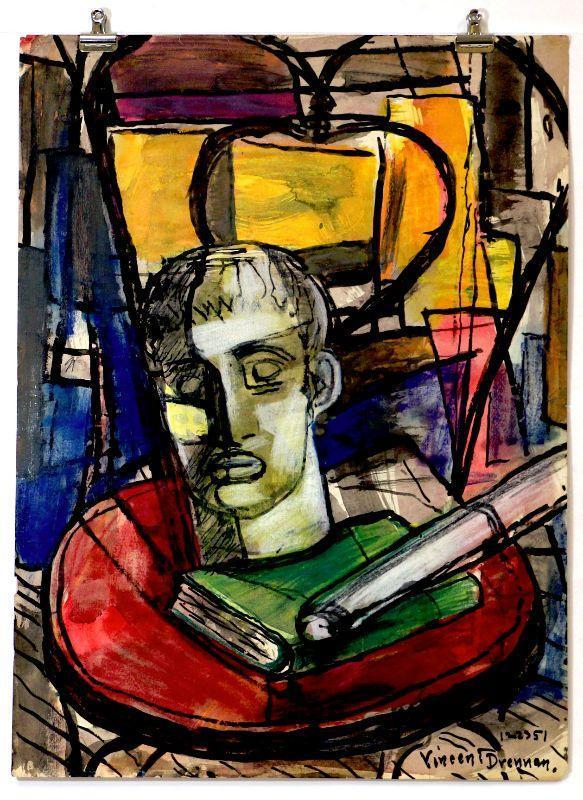 Original painting signed by artist Vincent Drennan. Medium: Watercolor/Goach, Support: Paper, Artist: Vincent Drennan, Signature: Yes, lower right, Approximate Work size: 24" x 18", Date of creation: 1951, Country of Origin: American, Condition: good/very good - as seen on pictures.
