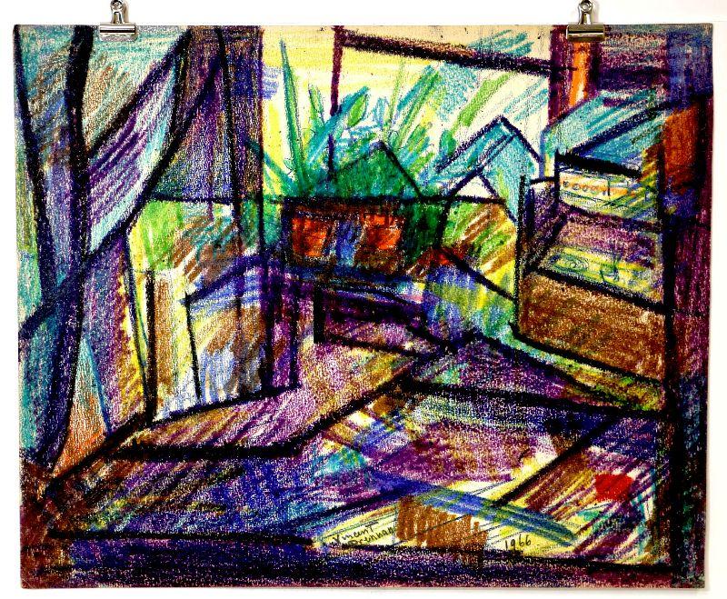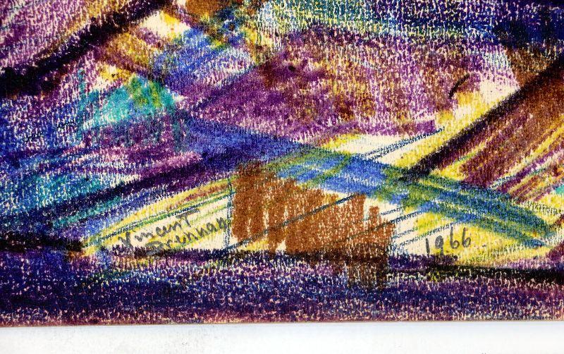 Original painting signed by artist Vincent Drennan. Medium: Pastel, Support: Paper, Artist: Vincent Drennan, Signature: Yes, lower center-right, Approximate Work size: 24" x 18", Date of creation: 1966, Country of Origin: American, Condition: good/very good - as seen on pictures.