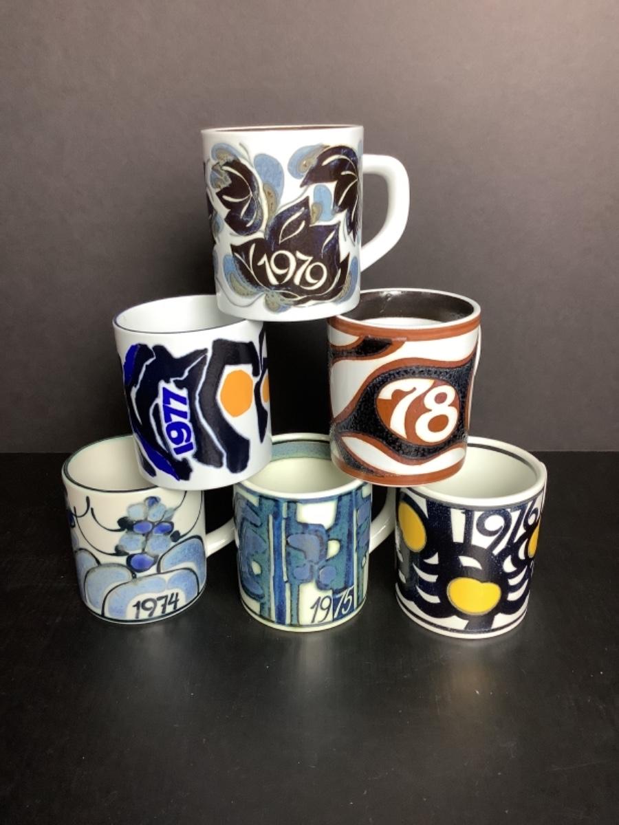 C - 295 Six ROYAL COPENHAGEN Small Annual Mugs 1974- 1979
