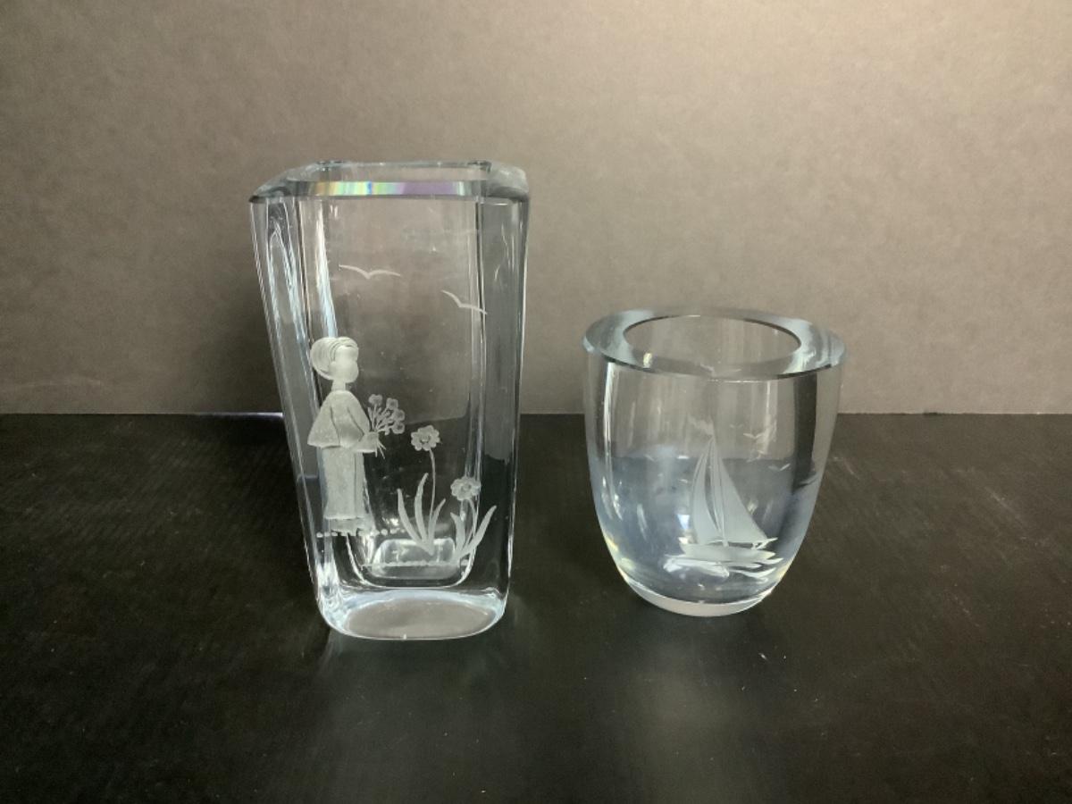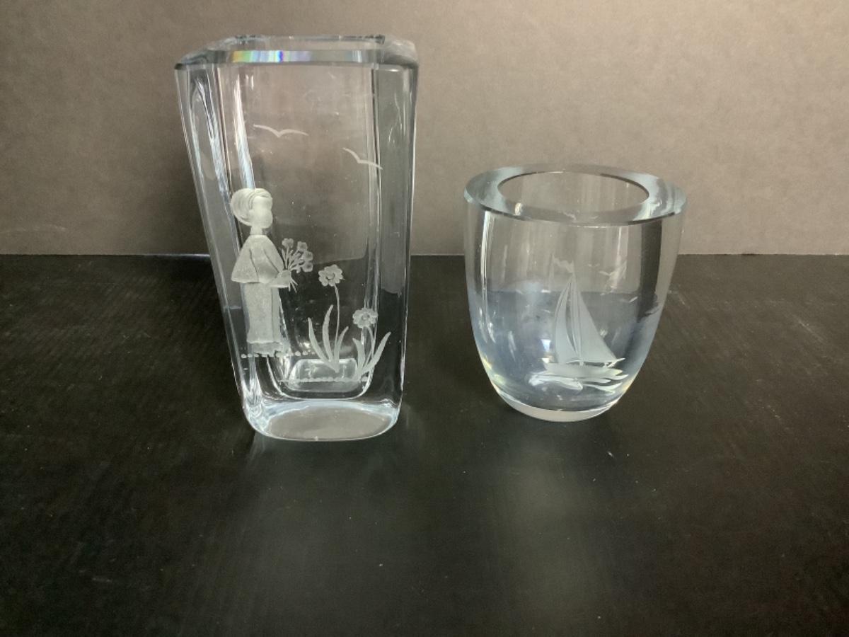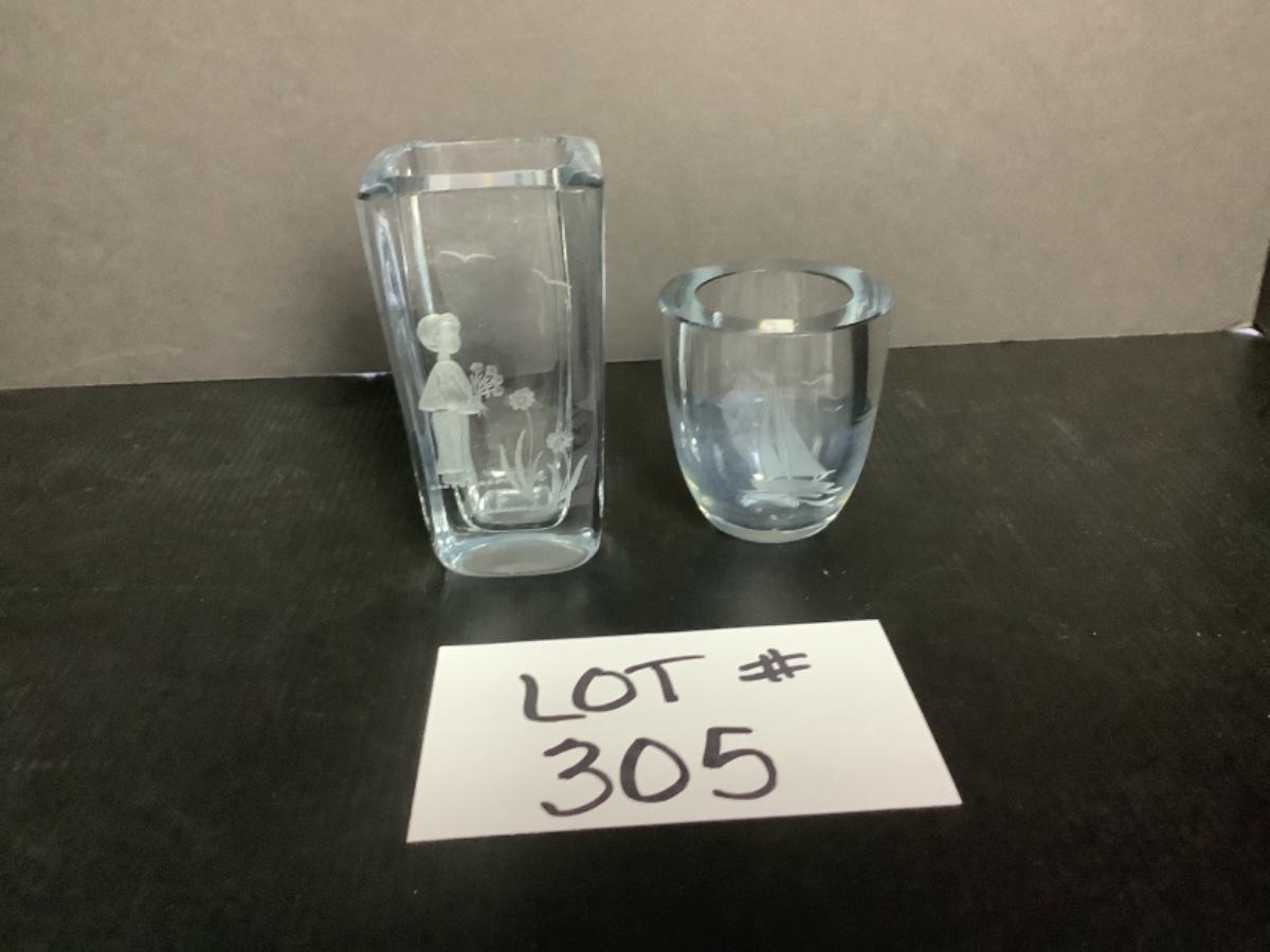 C - 305 Vintage Orrefors Sweden Etched Vase & Small Round Vase/Candleholder