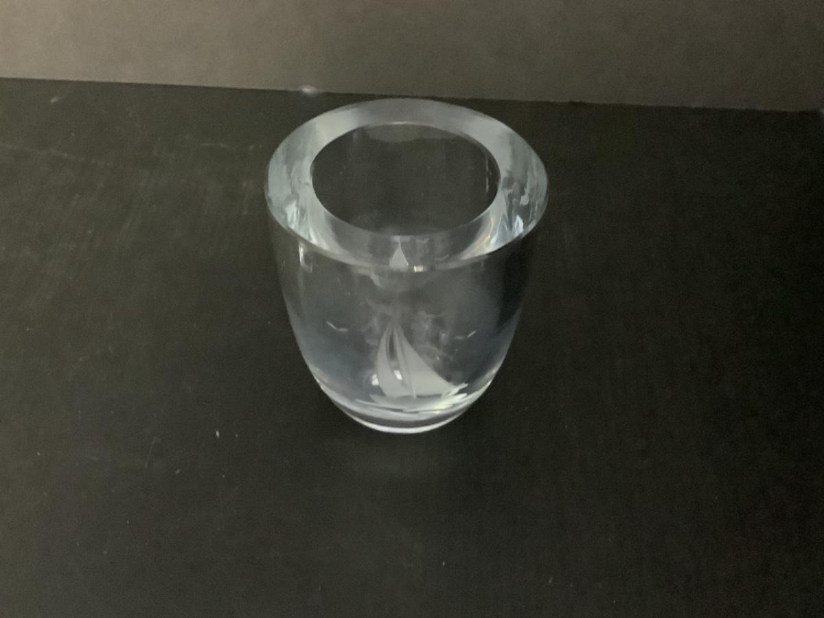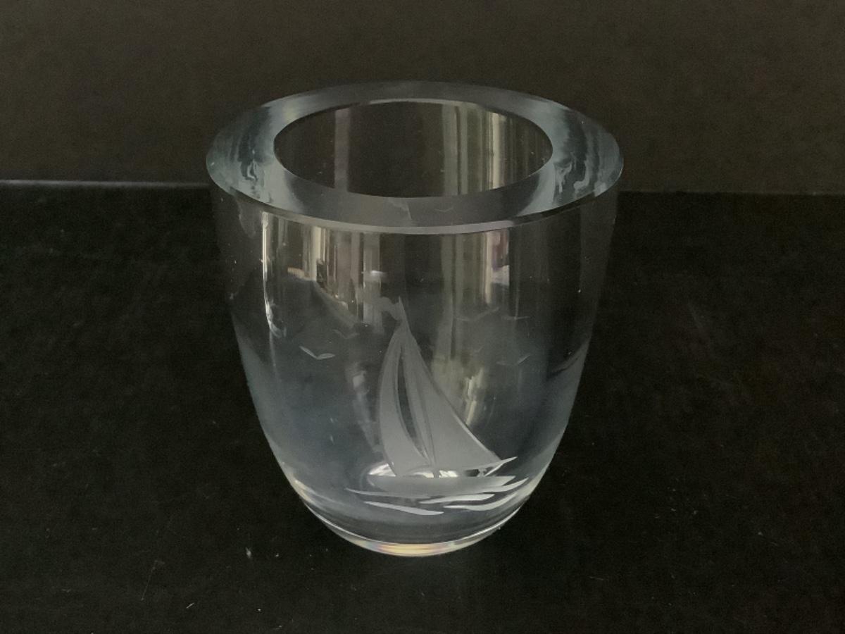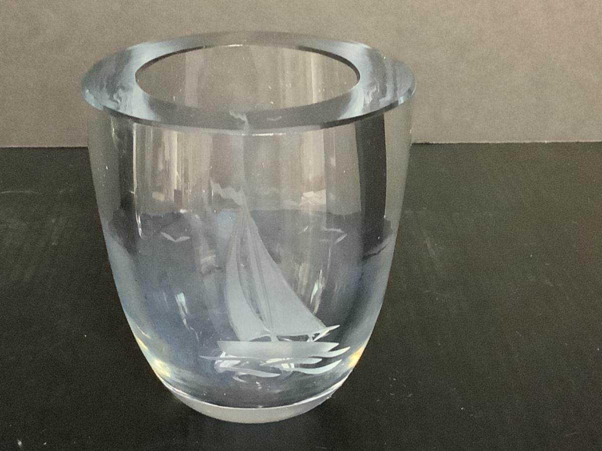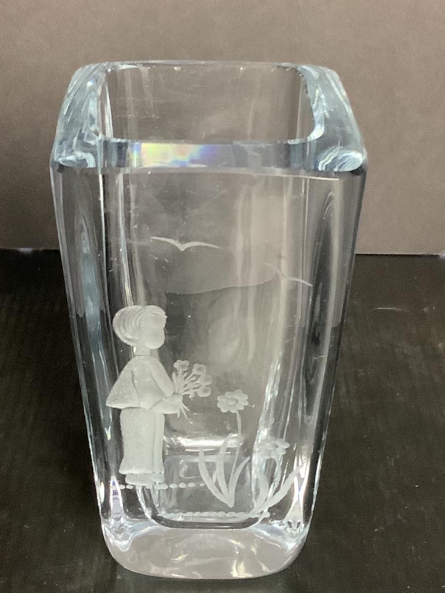 Vintage Crystal Orrefors Sweden Vase with Child Etched Design-