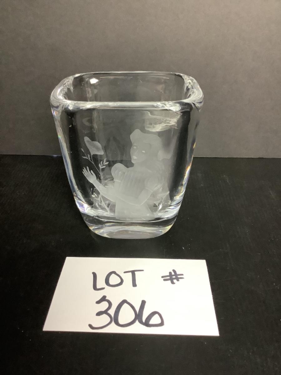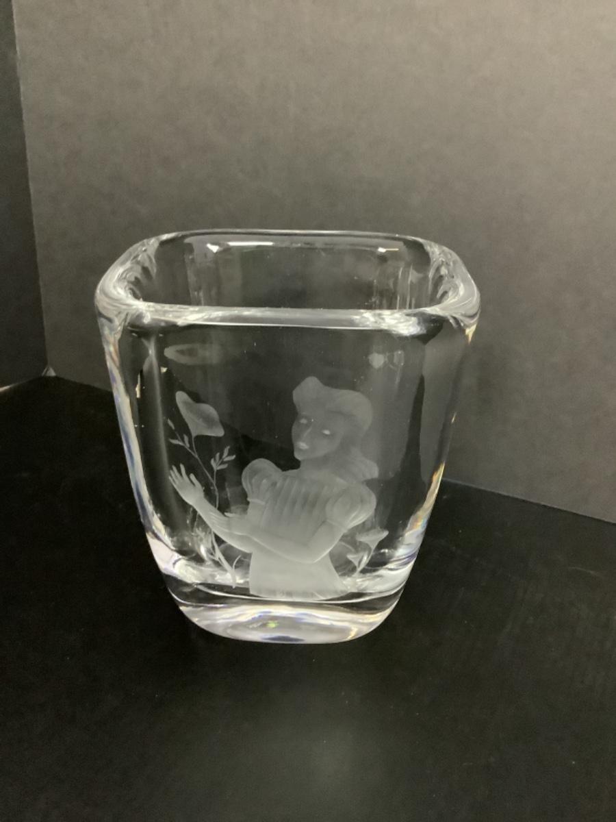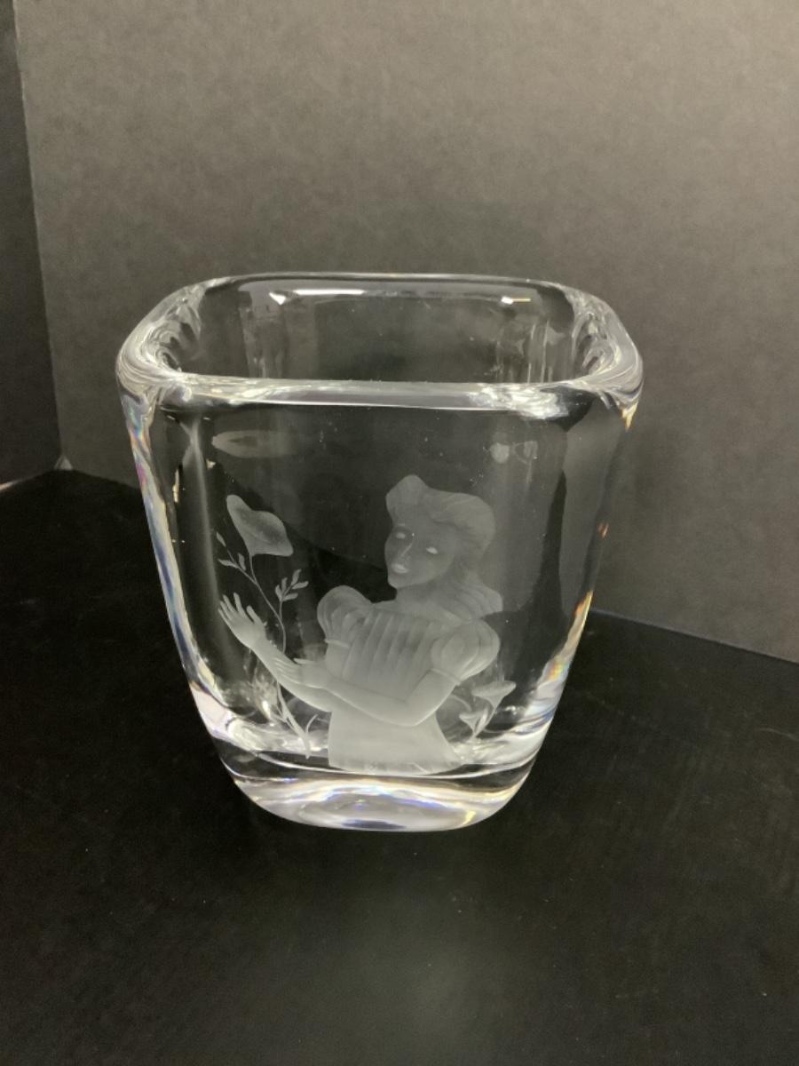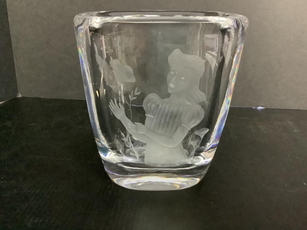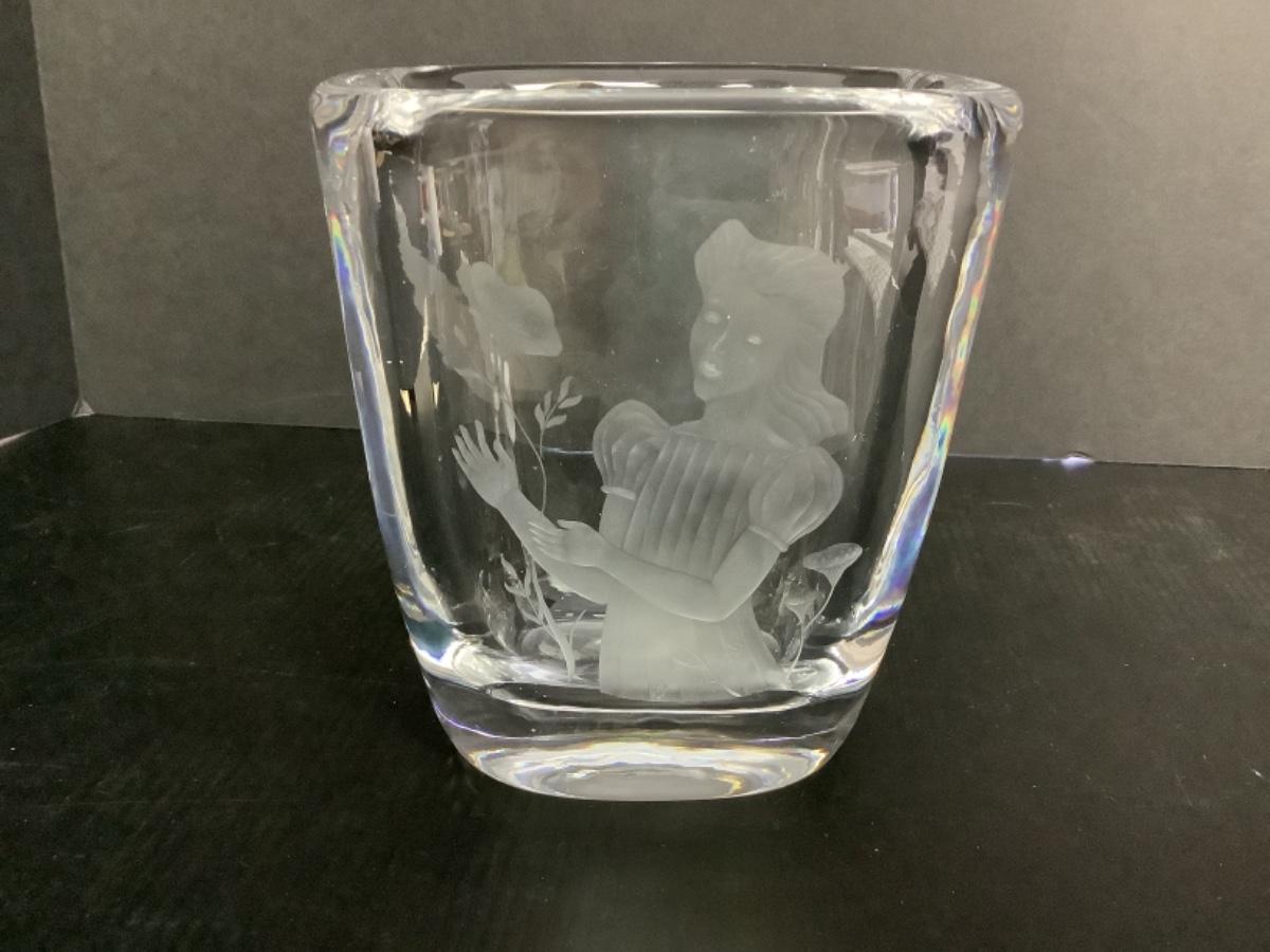C - 306 Vintage Orrefors Crystal Vase with Etched Woman