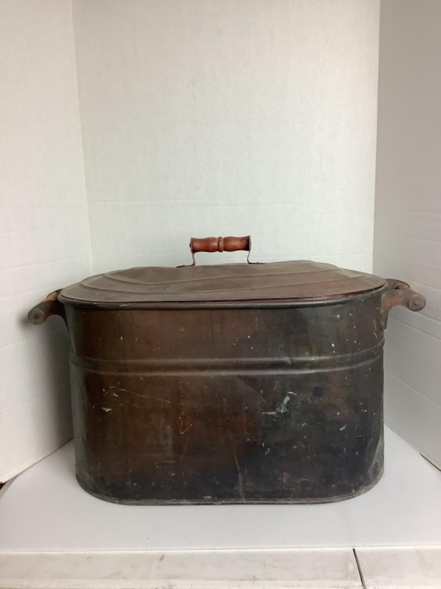 Antique Double Handled Copper Broiler Wash Tub with Lid