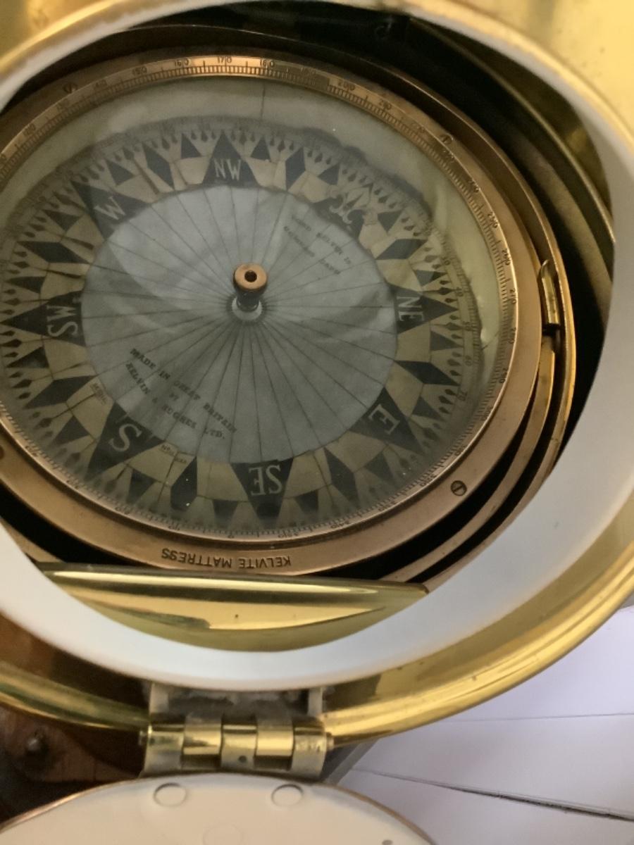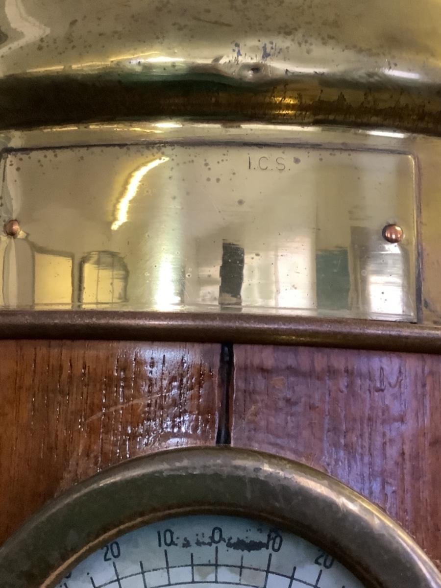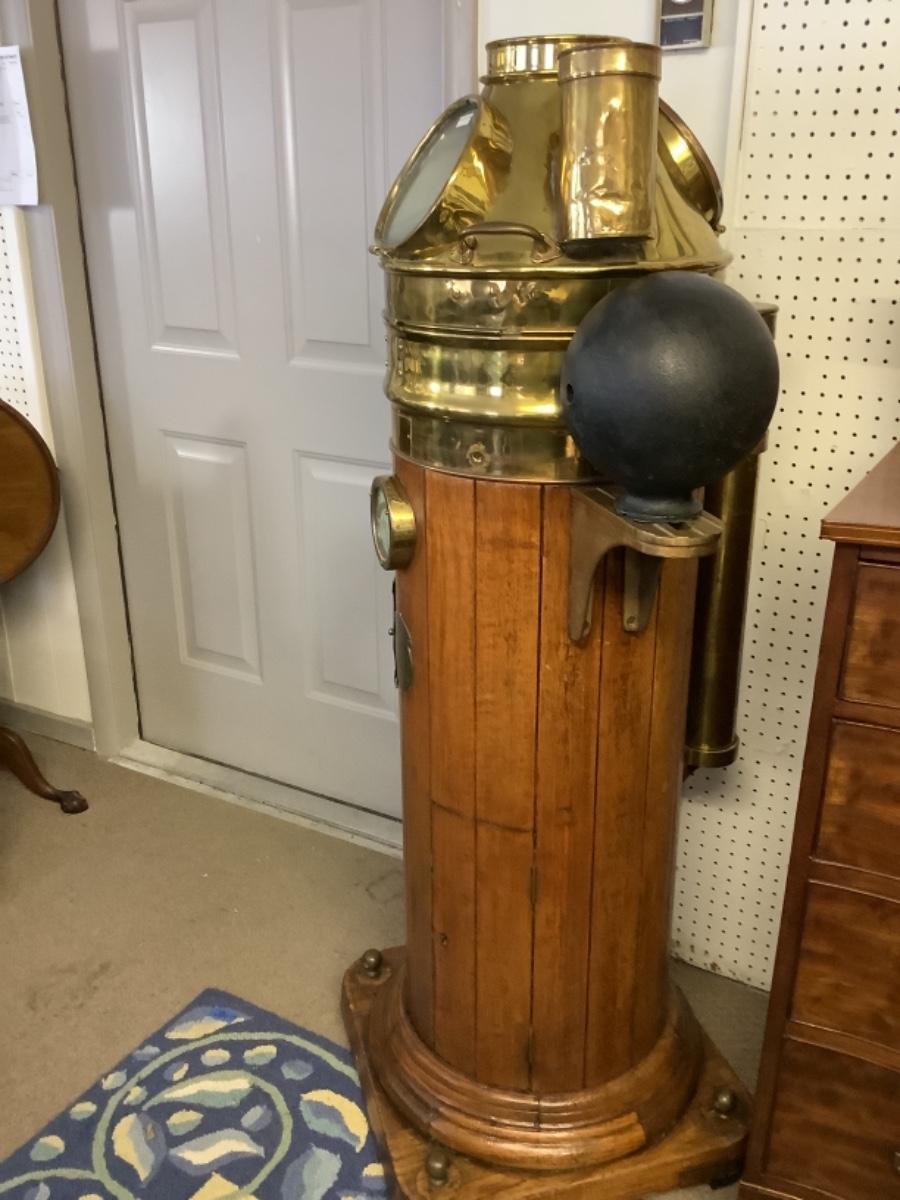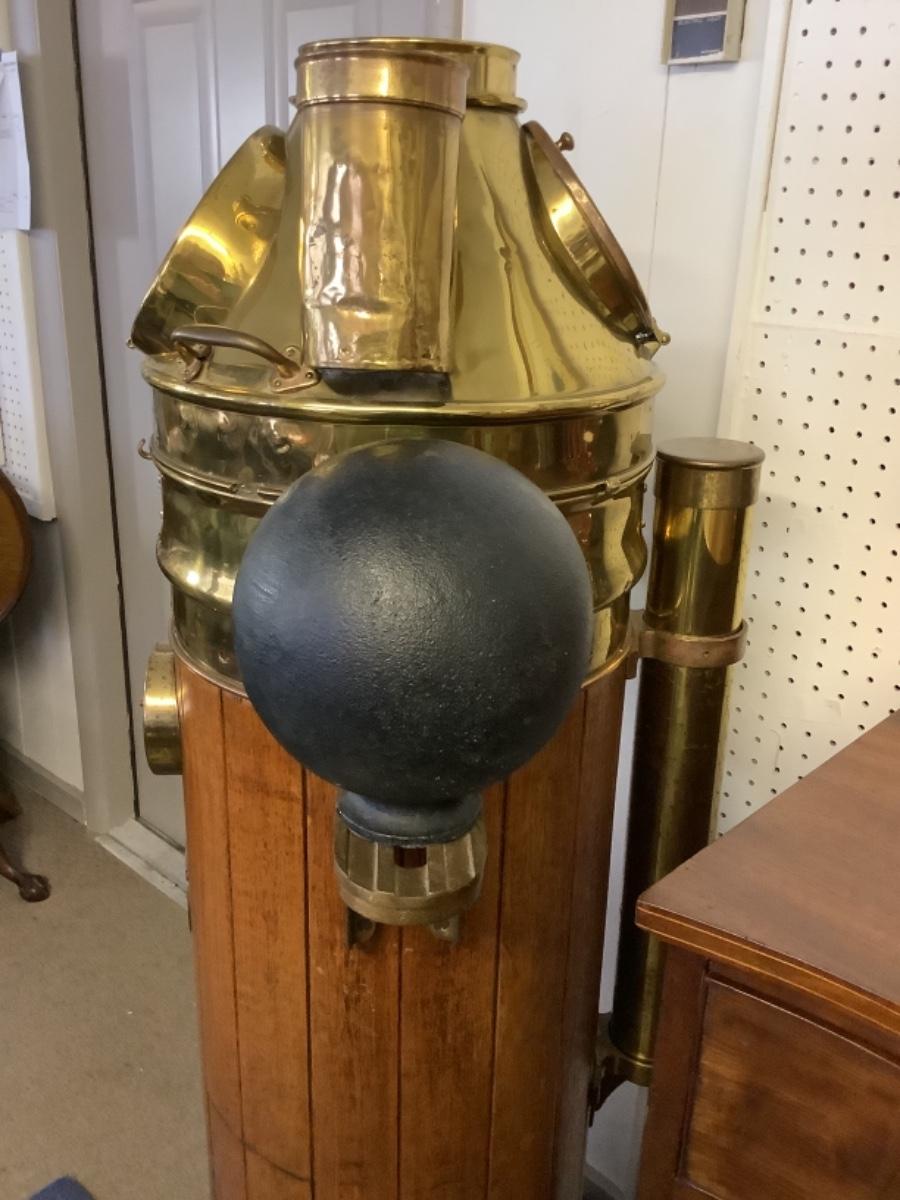 C - 448. Kelvin Bottomley & Baird LTD Antique Wooden, Copper & Brass Nautical Ships Binnacle