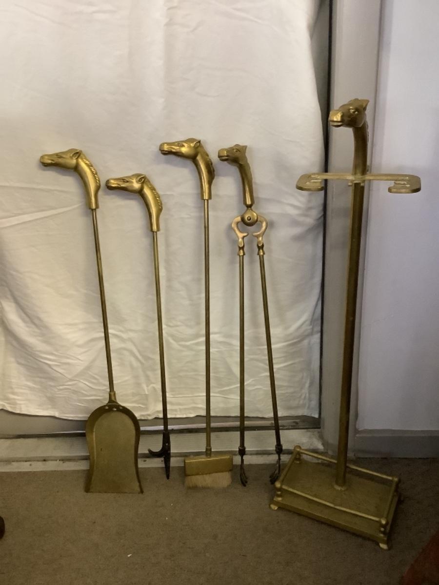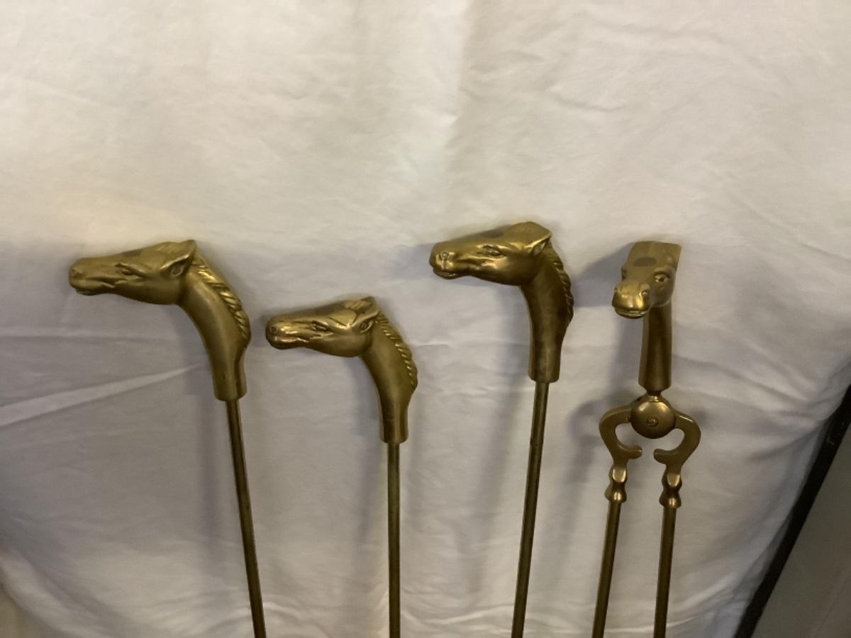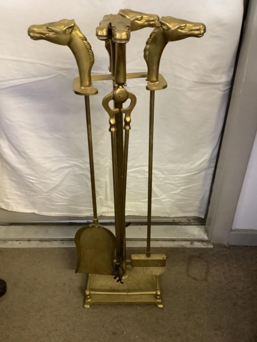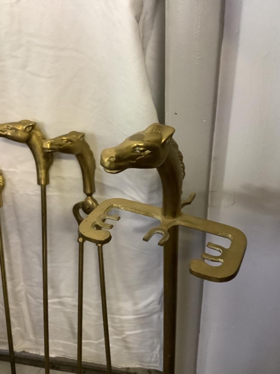 C - 458. Vintage Solid Brass Horse Head Fireplace Tools