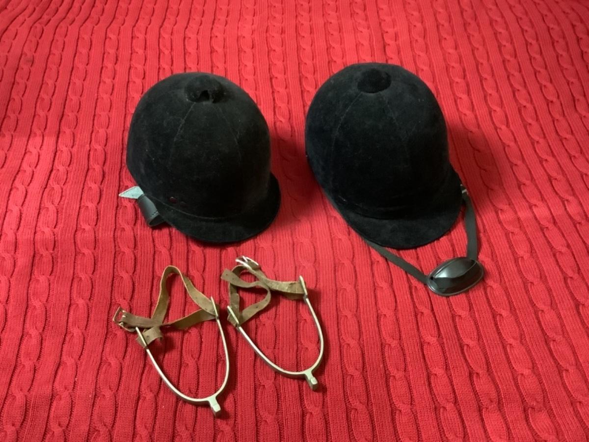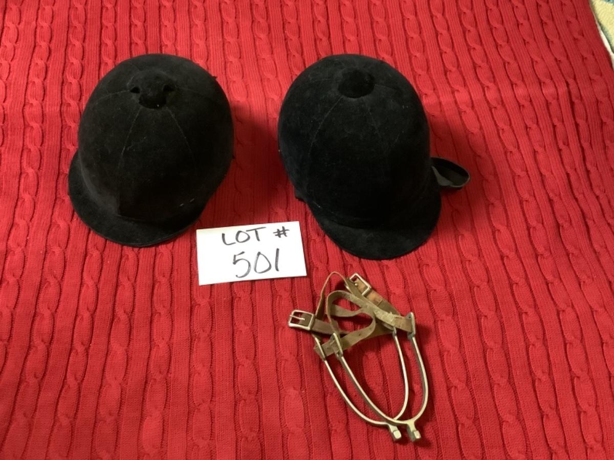 C - 501 Pair of Equestrian Riding Hats & Set of Spurs