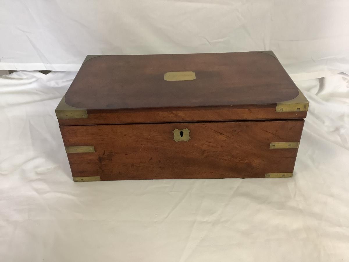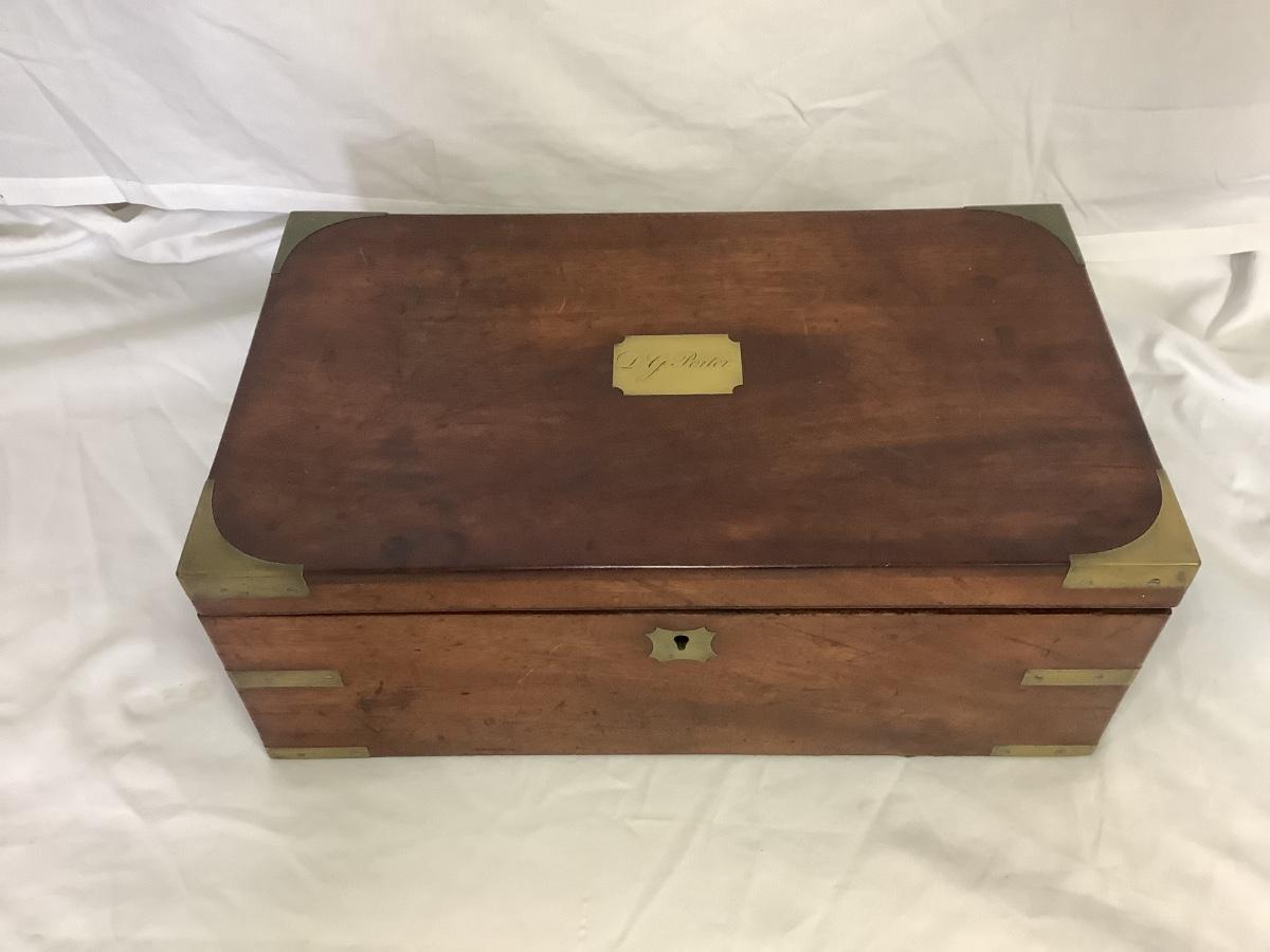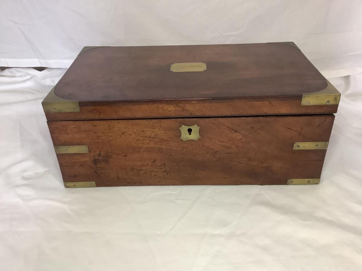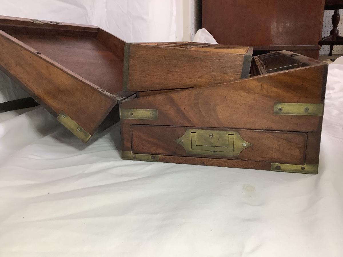 C - 608 Antique English George III Mahogany and Brass Traveling Desk Writing Slope Box