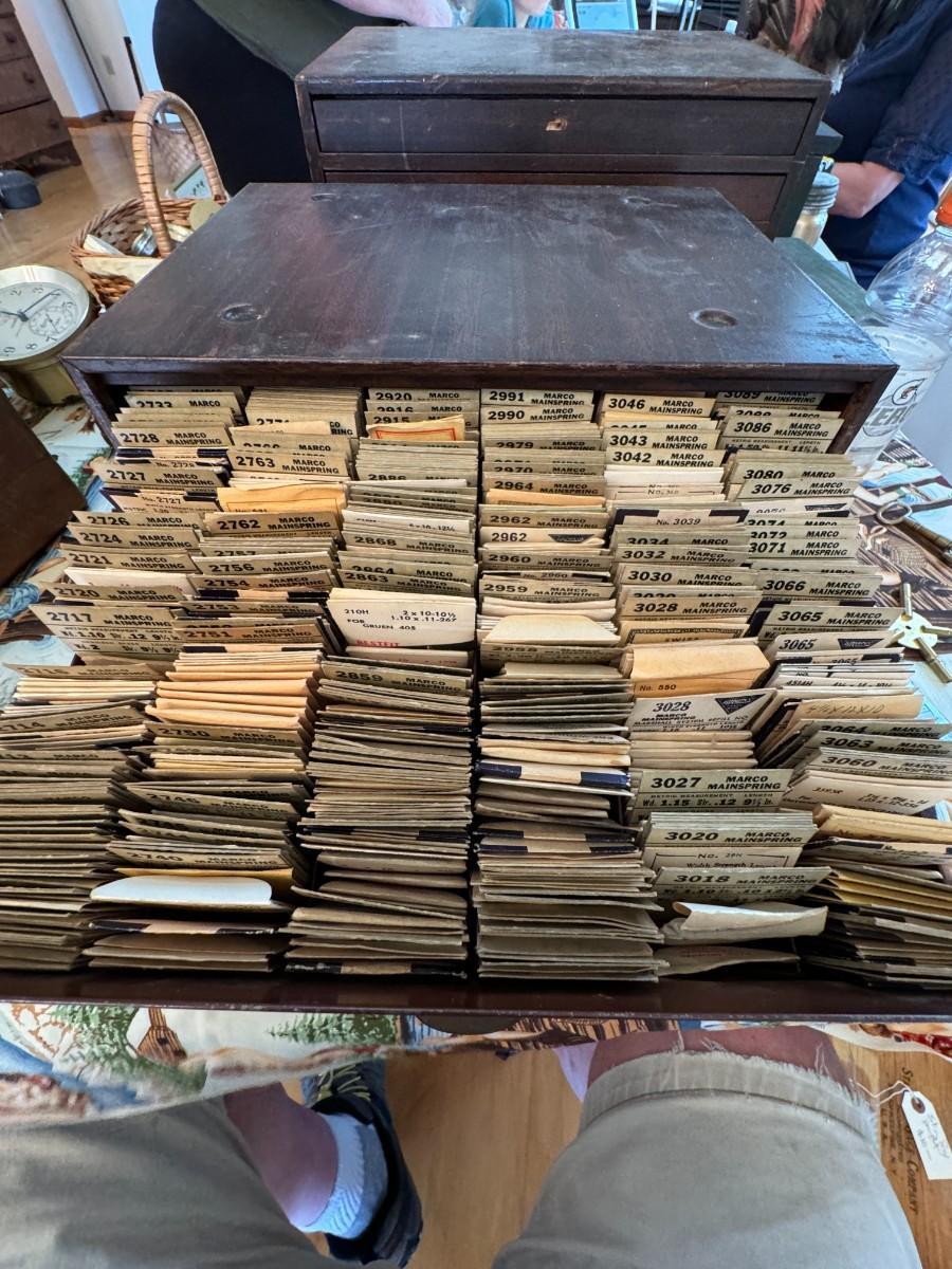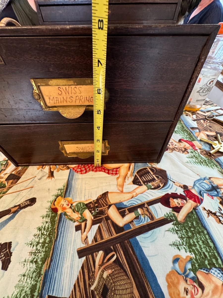 Two drawer cabinet with vintage watch parts