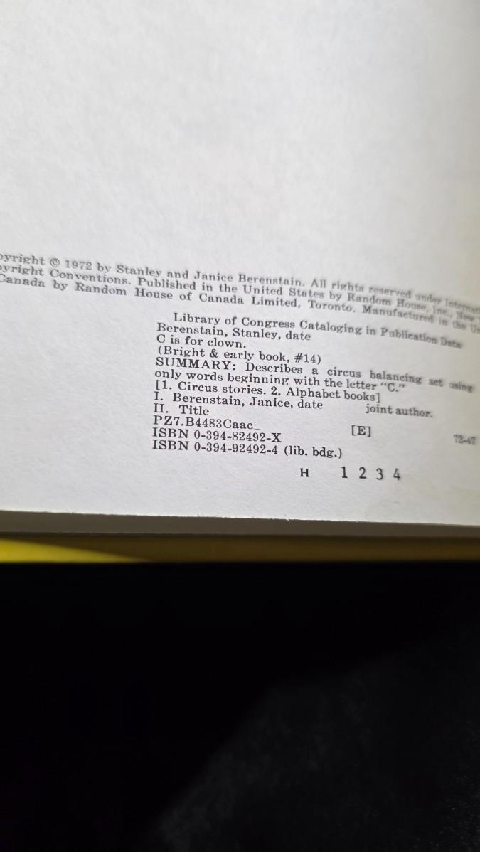C is for Clown by Stan and Jan Berenstain - 1972 Bright and Early Book for Beginning Beginners