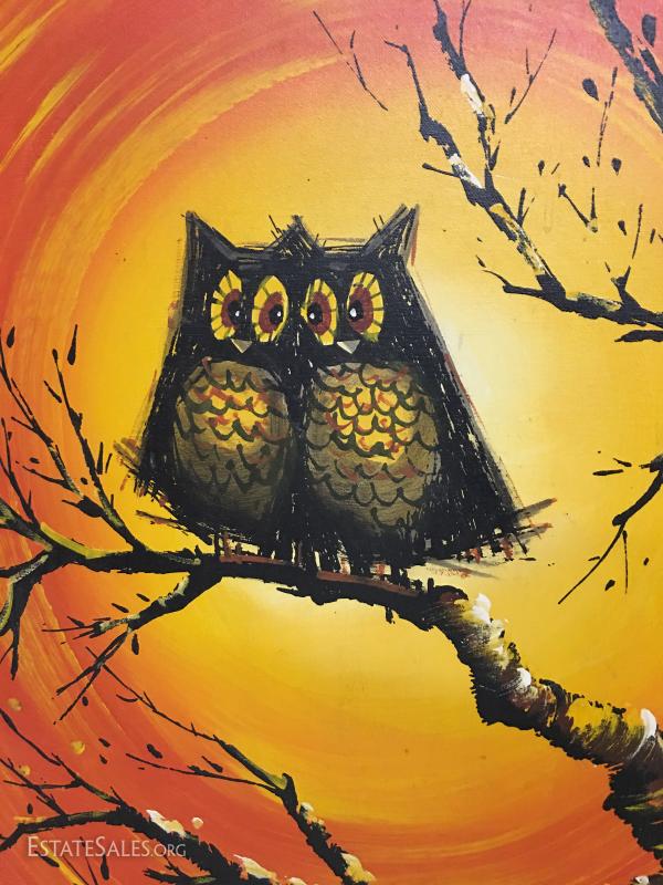 C. Roberts "Owls" Painting, Acrylic on Canvas 1970's MCM~