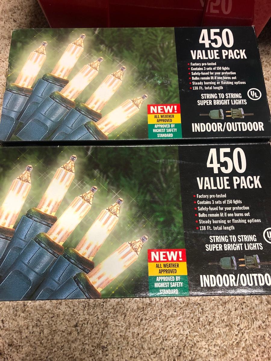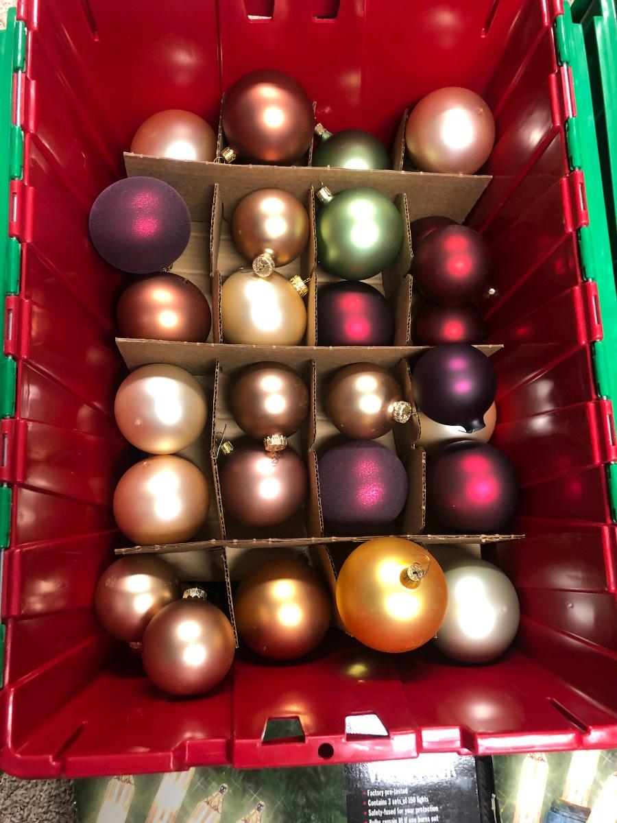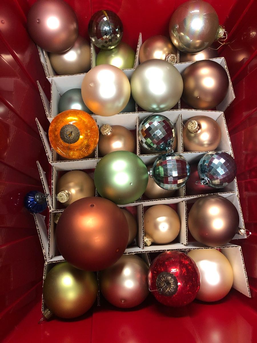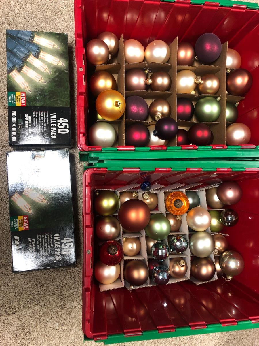 C1- Christmas Ball Ornaments & lights in totes