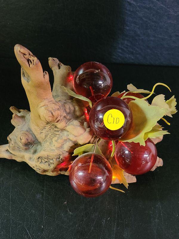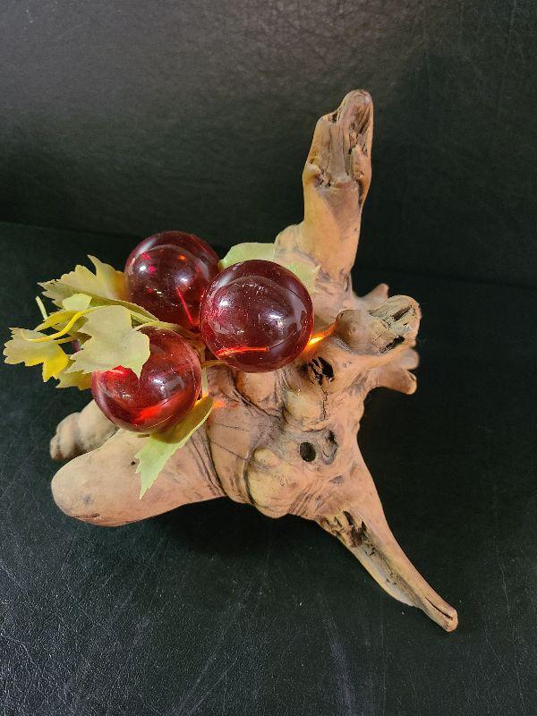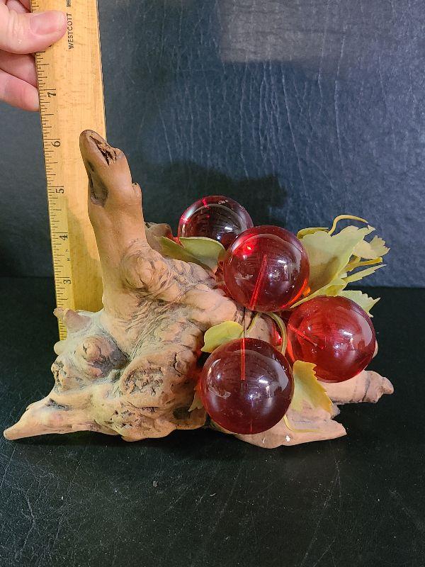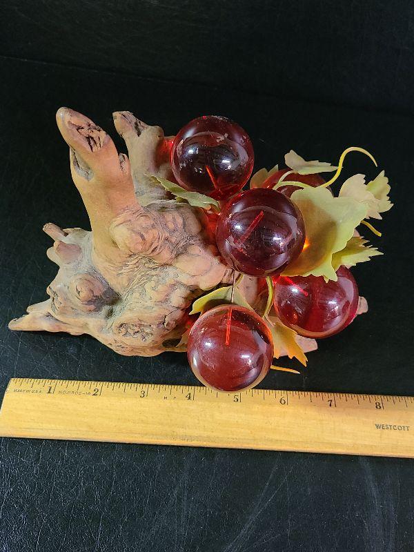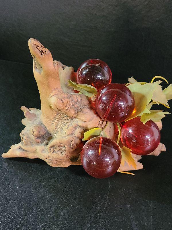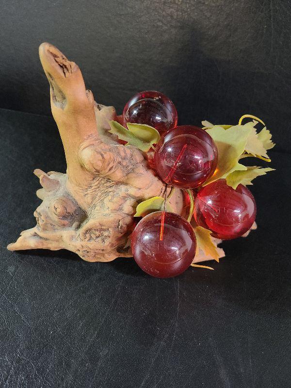 Smaller set of grapes on wood. Please see pics for sizing and condition. Grapes are a beautiful red, and great accent in MCM home!