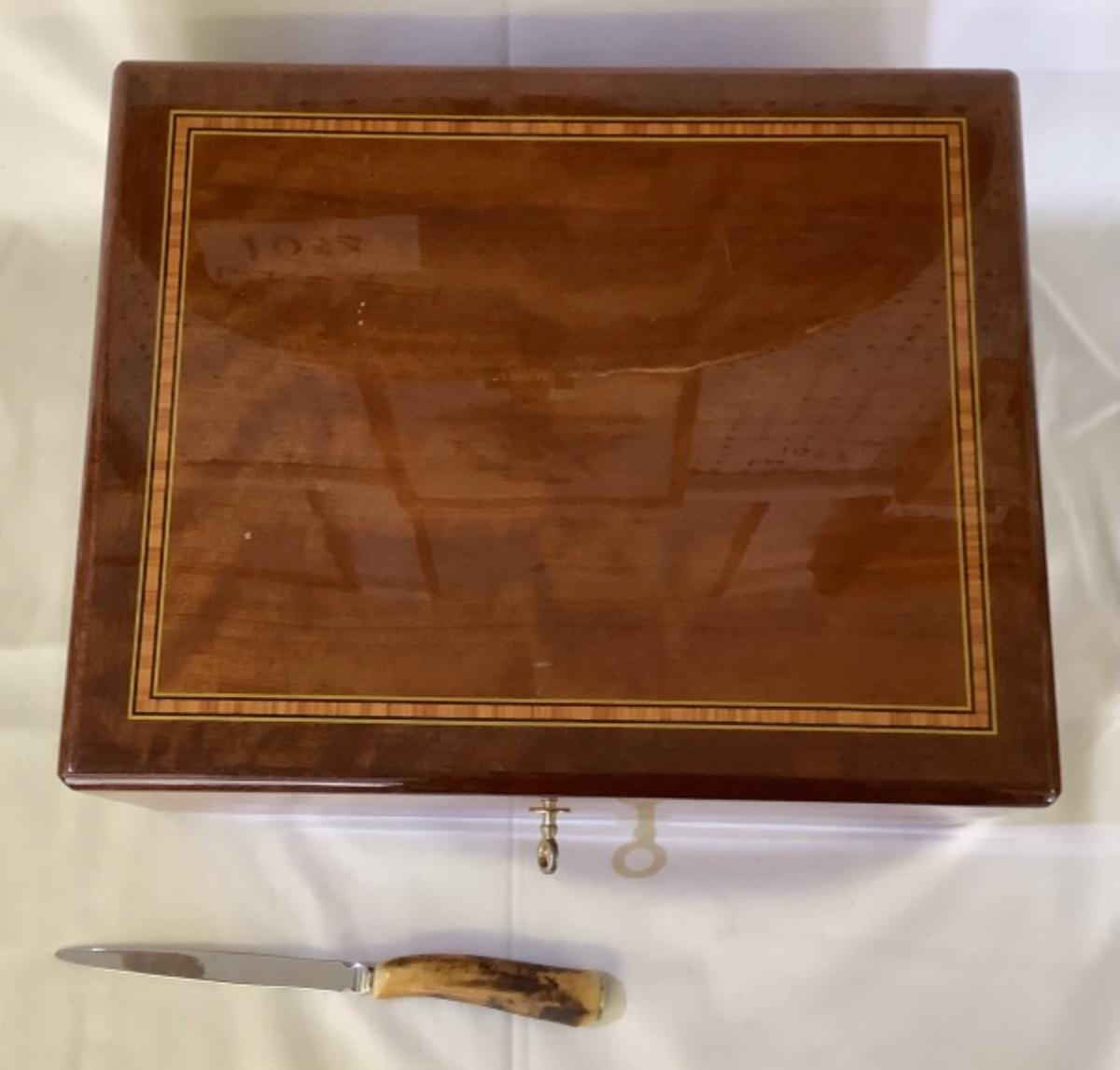 C1068 Varnished Humidor with Lock and Key and Hoffritz Letter Opener