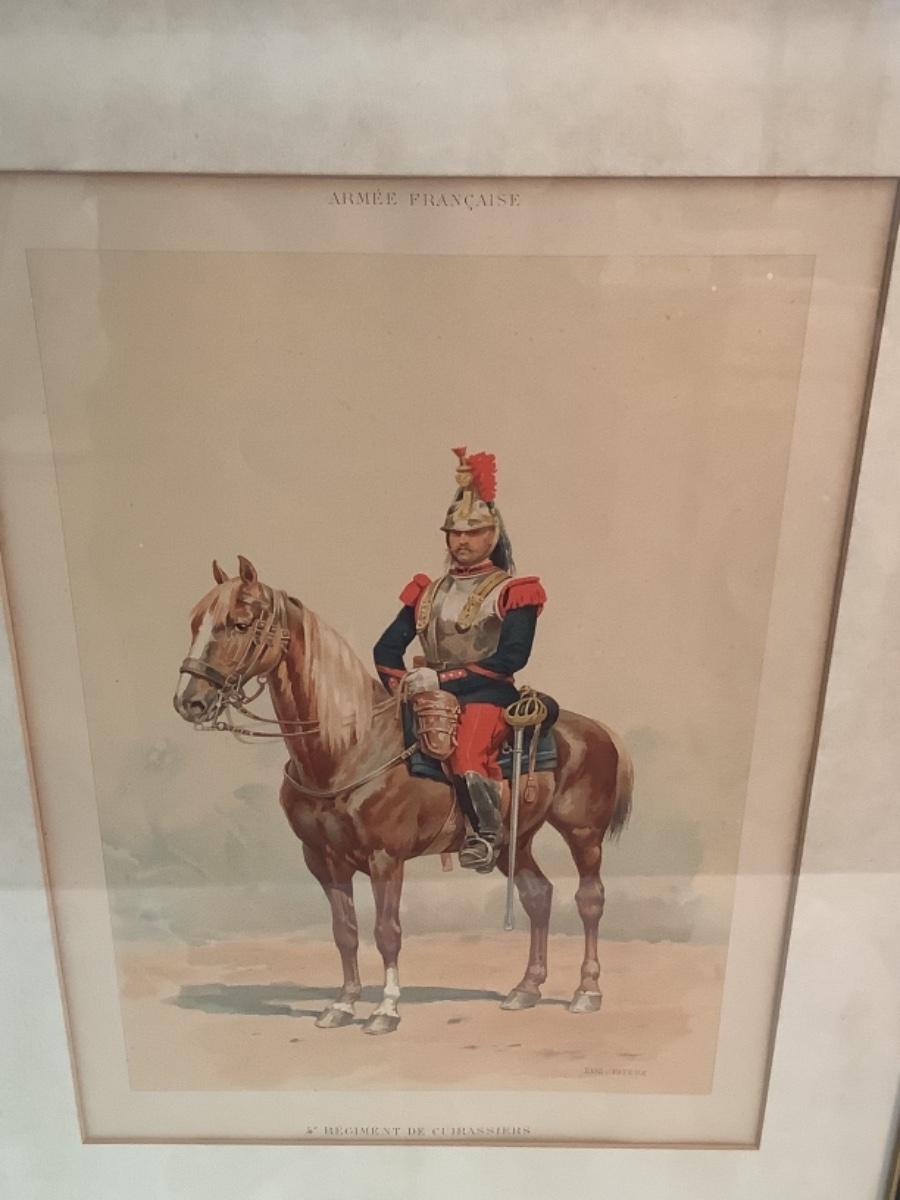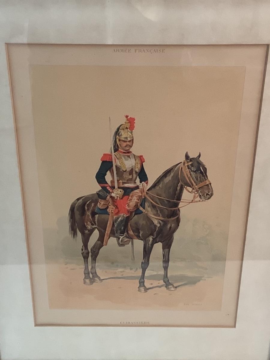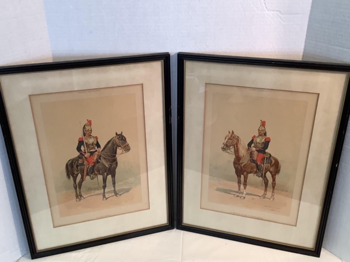 Pair of Armee’ Francaise framed prints “4th Regiment Cuirassiers” and “Cuirassiers”, both measure 21” tall and 16” wide