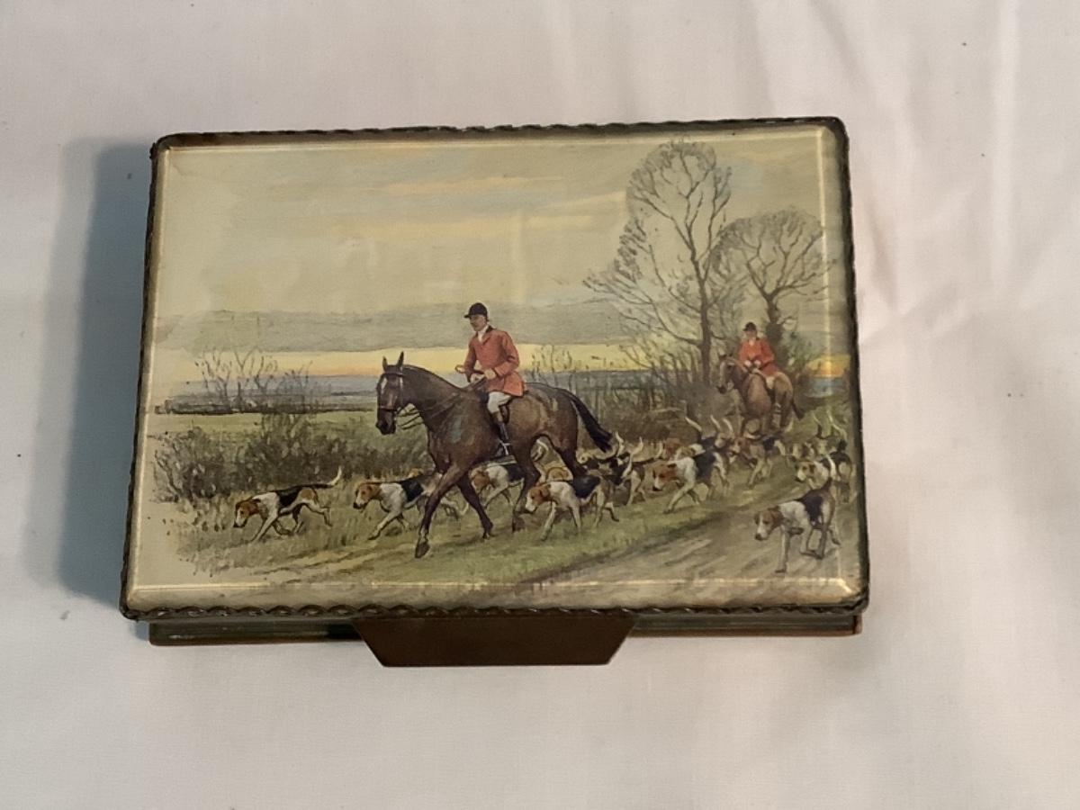 C1083 Miniature Two Drawer Chest Brass Box with Hunt Scene