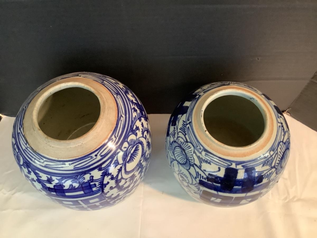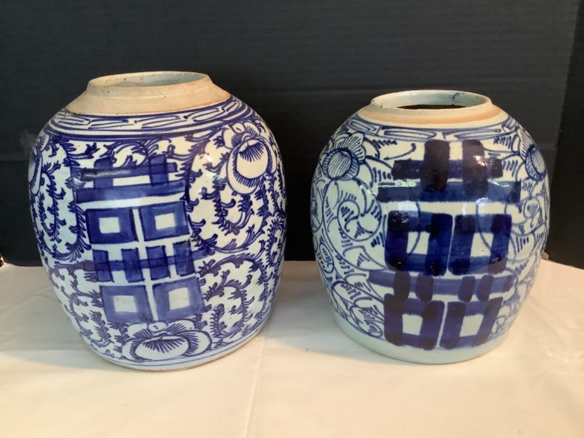 Two Chinese Canton Ginger Jars without lids, 1 measures 9” tall and 1 measures 8” tall