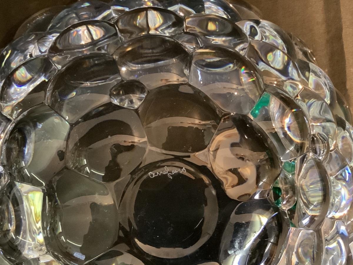 C1101 Pair of Orrefors Crystal Anne Nilsson Raspberry Bubble Bowls