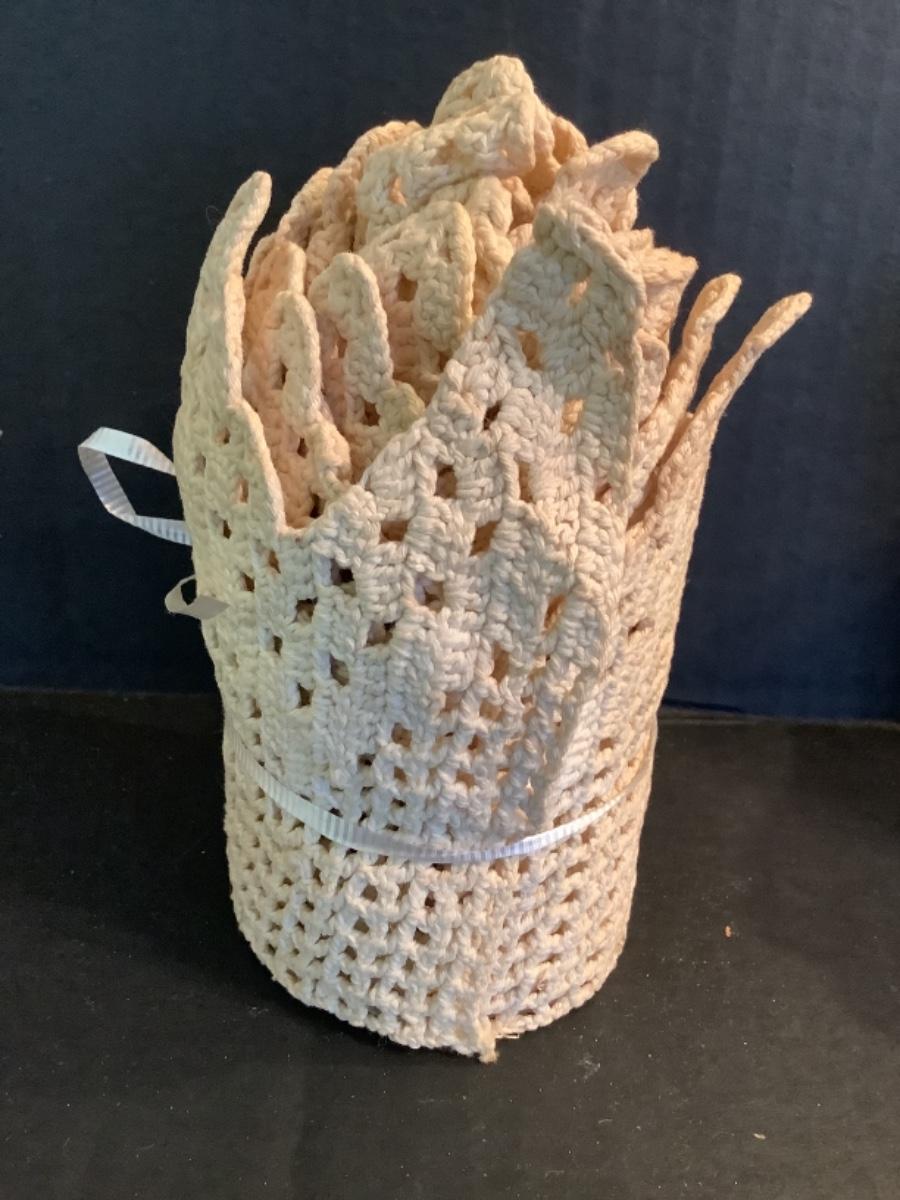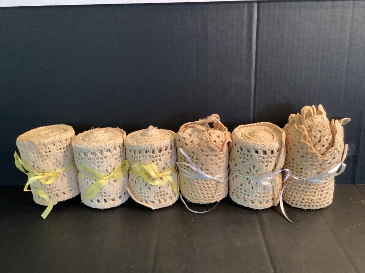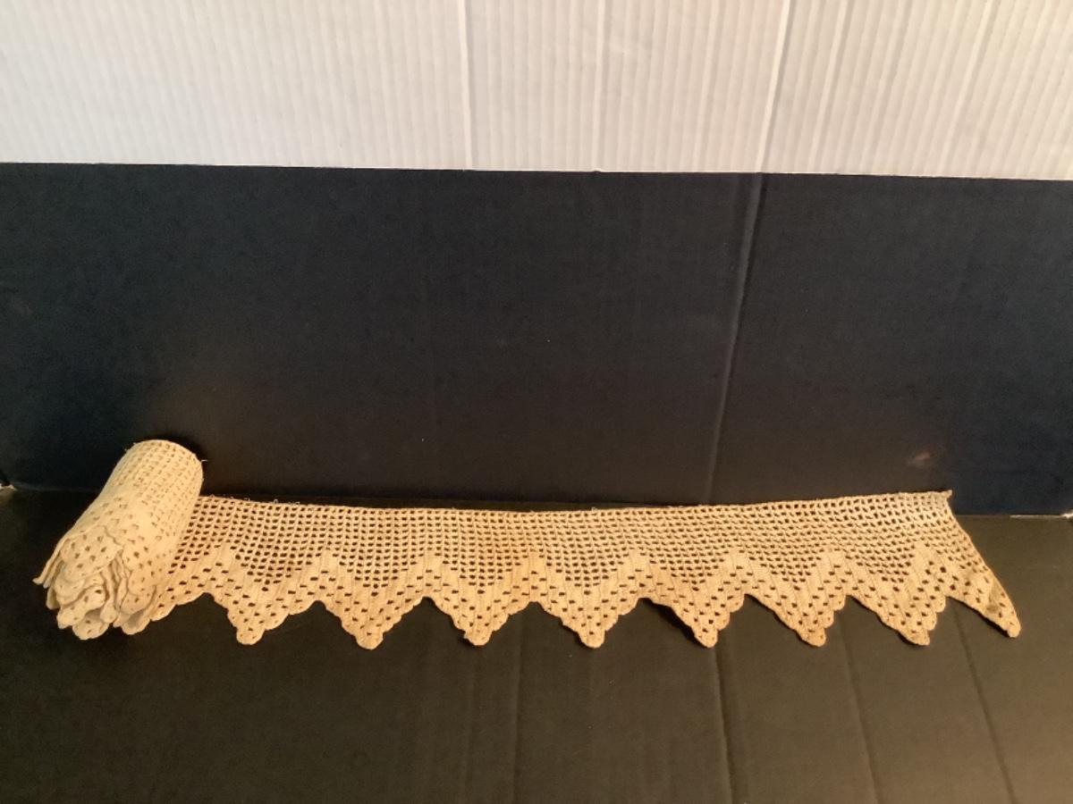 Six pieces of crocheted cotton border, Some discoloration that may come out when cleaned