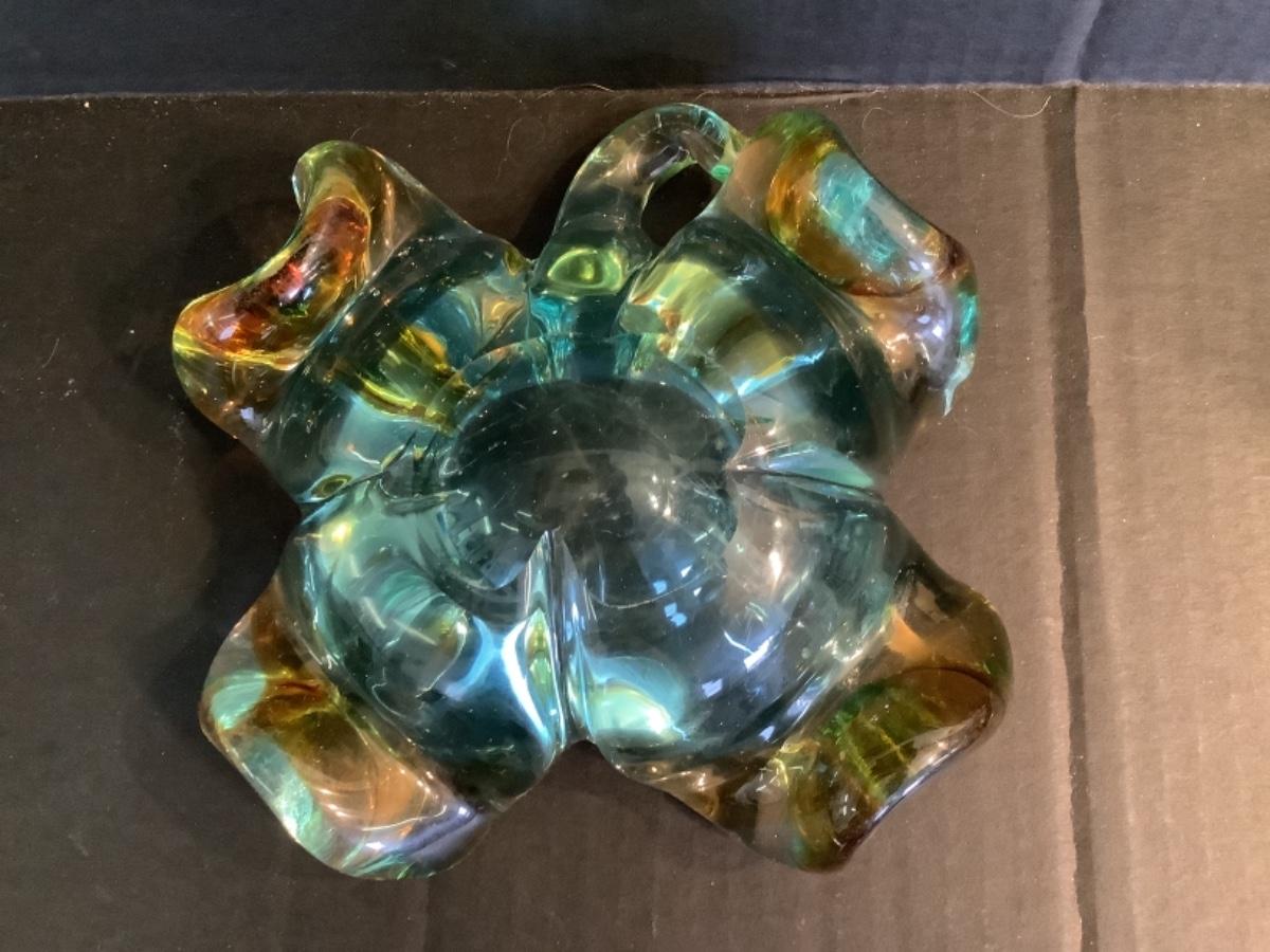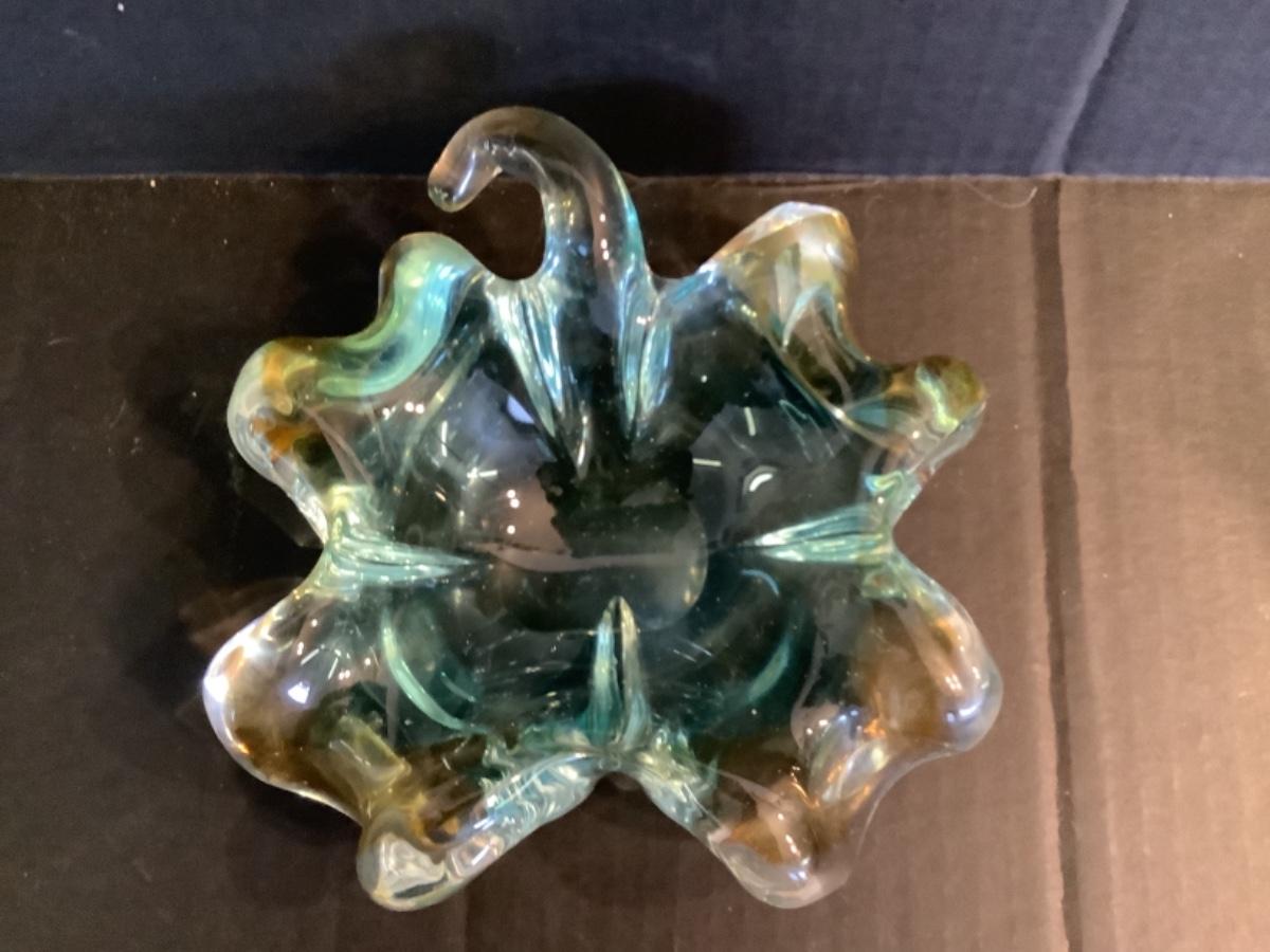 Murano blown glass leaf shaped dish, Pair of blown glass goblets one measures 7” tall and the other measures 6-3/4” tall