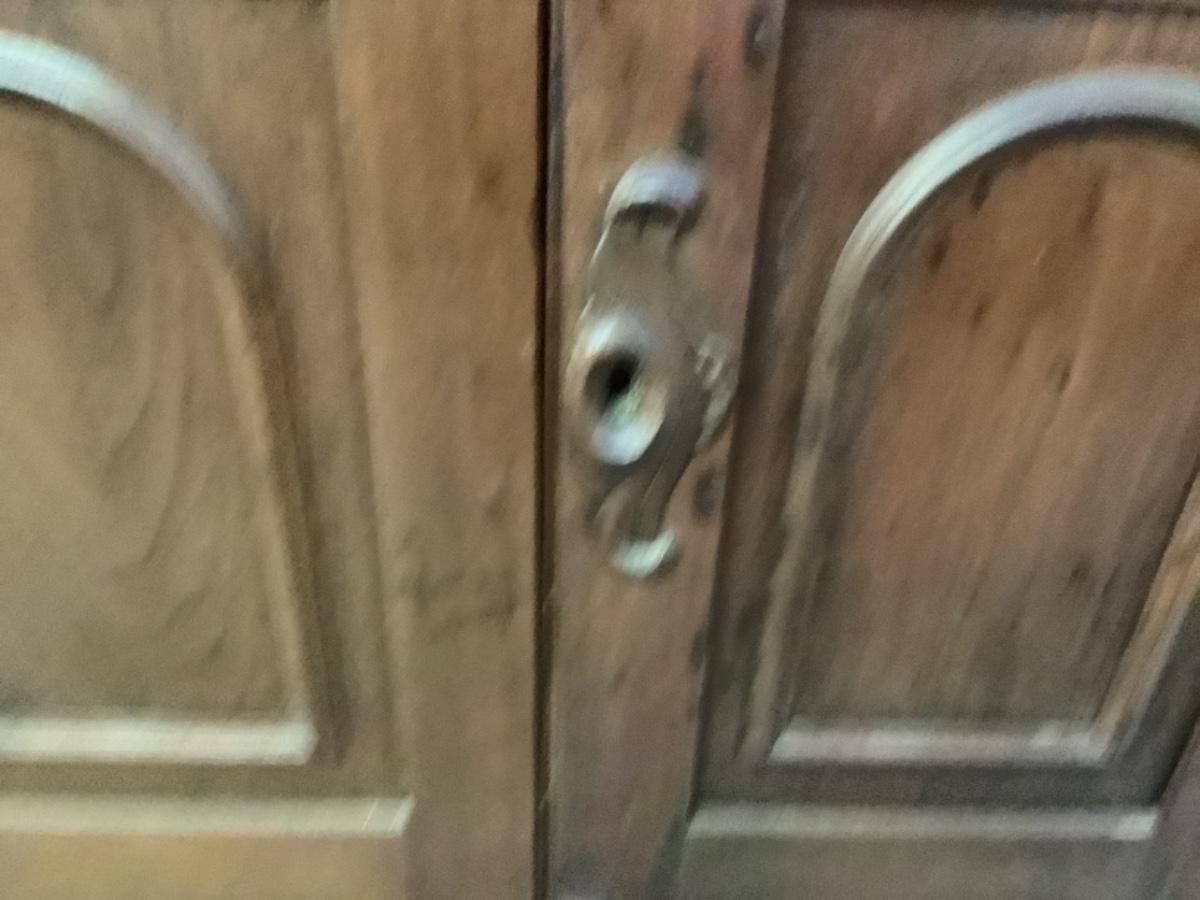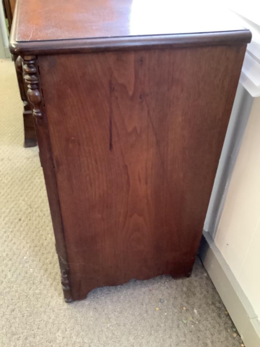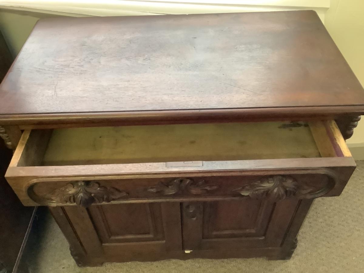 Victorian hand carved walnut wash stand, Drawer has a lock (no key), doors are missing their latch and lock, measures 16” long 30” wide and 28-1/2” high