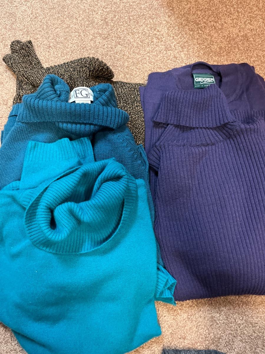 C112- geiger and cashmere sweaters, various brands, and sizes. See pics.
