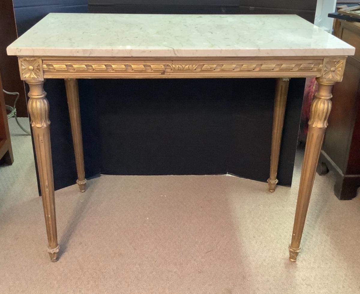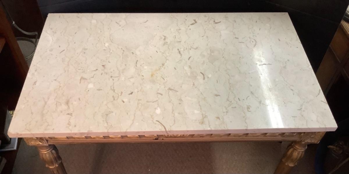 Marble and table are separate pieces, Table measures 30-1/4” high 37-1/2” long and 23-1/4” deep