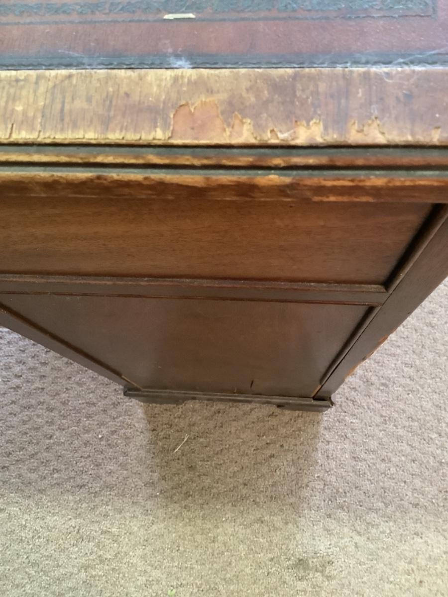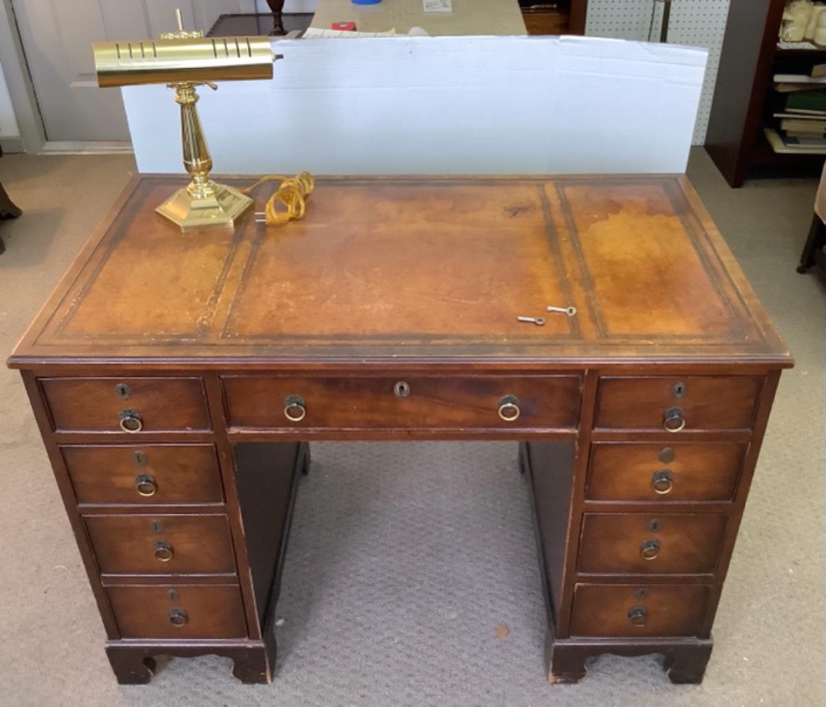 C1163 Vintage Mahogany Veneer Leather Top Knee Hole Desk