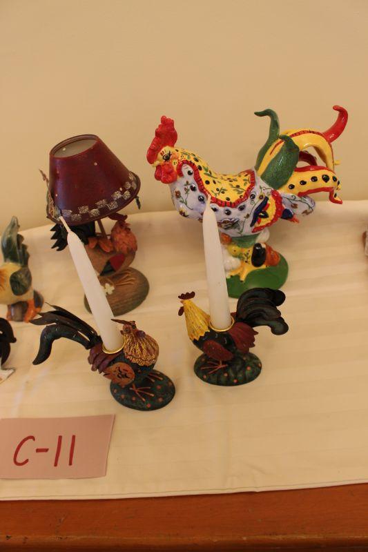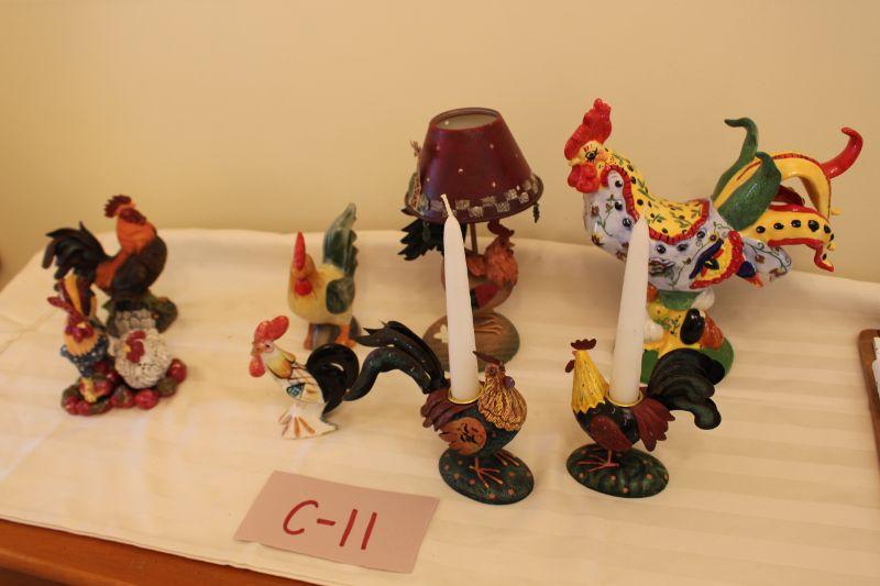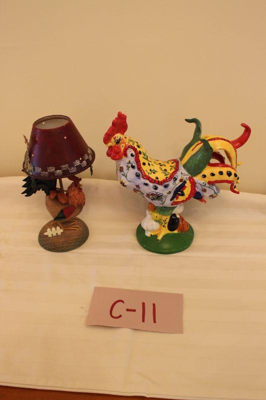C-11-Lot 8 Farmhouse Rooster and Chickens- Ceramics  and Resin 10"-5" Tall