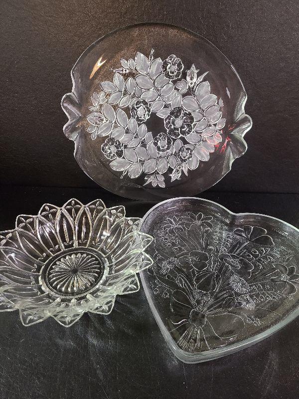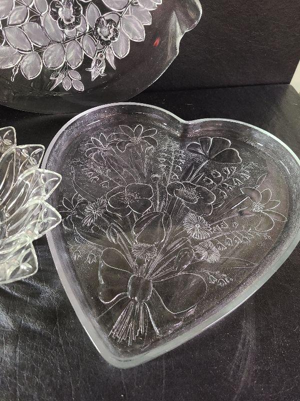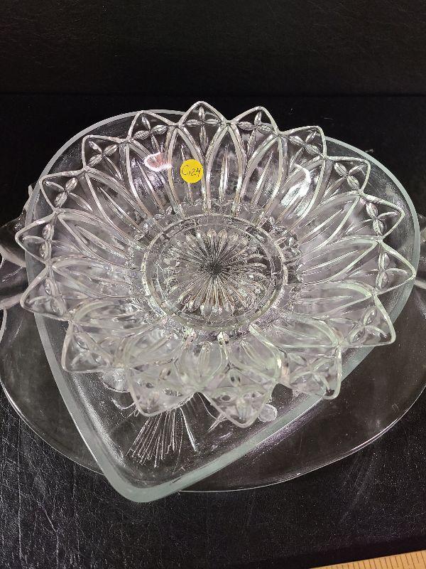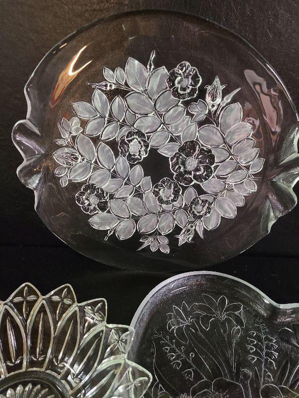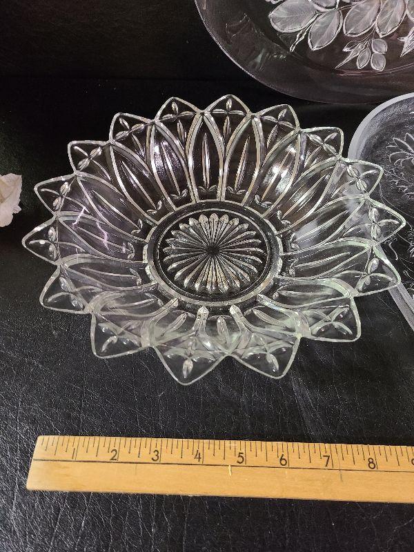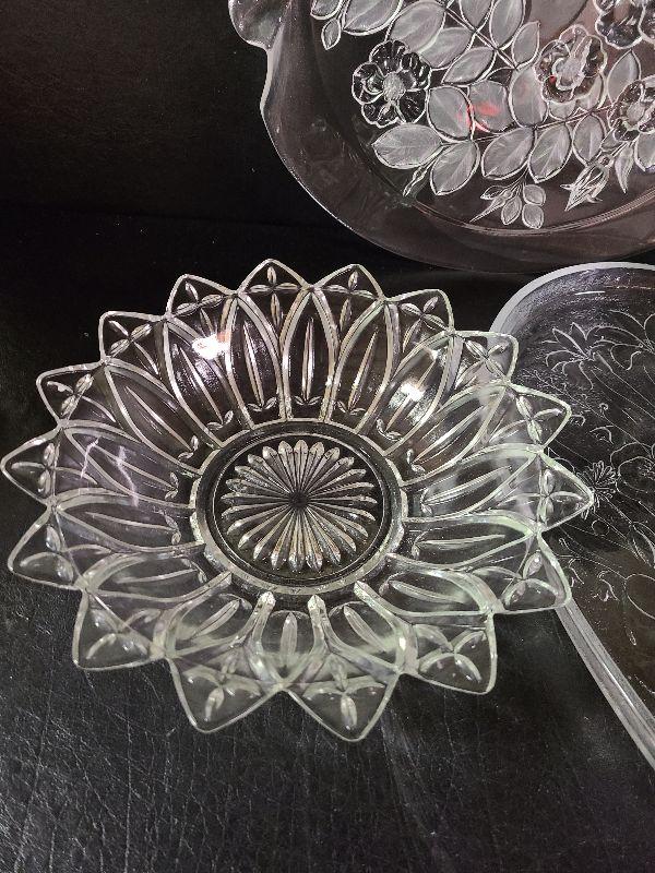 Beautiful lot of glass serving pieces. Please see pics for sizing and condition