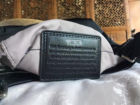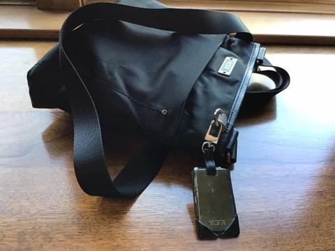 The TUMI bag looks unused & is in great condition. It is 11" across x 9.5" tall.