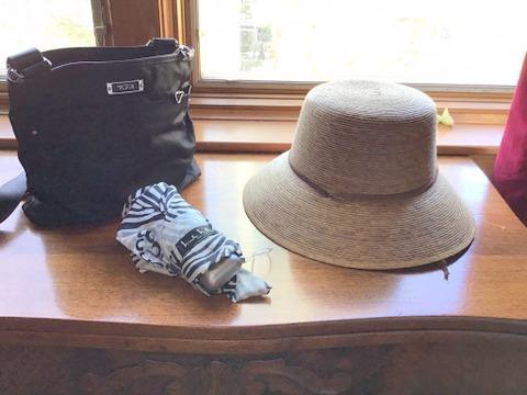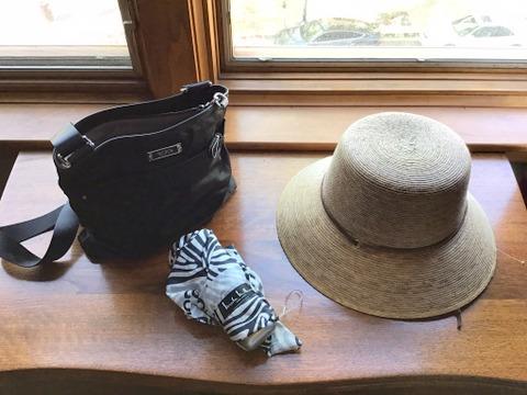 C125 - Black TUMI Shoulder Bag, Straw Hat & Nicole Miller Umbrella